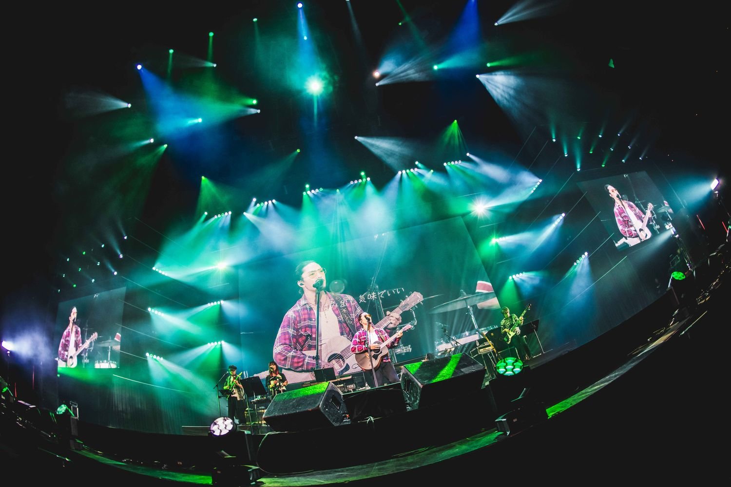 イベントは後半戦に突入! 続いて登場したのは大阪・松原が生んだロックバンド・flumpoolだ。今年3月にリリースされたフルアルバムのタイトル“Shape the water”がスクリーンに映し出されてメンバーが登場すると、山村隆太(Vo/G)が「始めるぜ、大阪!」と叫んで「Keep it up!!」からライブがスタート。爽快に突き抜ける光り輝くサウンドを響かせていく。2曲目の「君に届け」では山村がステージのあちこちを指差しながら縦横無尽に動き回って歌声を届け、手拍子や歓声が上がって場内のボルテージは最高潮に! 阪井一生(G)が「必殺技(=代表曲である「君に届け」のこと)を出すん早すぎへん? これから休憩タイムになってしまう(笑)」と自虐ネタで笑いを誘うと、そこからMCタイムに。山村が「日々頑張っている中で報われない想いをすることがあると思います。僕自身もあるし、逃げたくなる時もあるけど、やったことが報われなくても後悔のまま終わらせたくないという思いで作った新曲を演奏します」と話して「ハレルヤ・レディ」へ。全ての人への応援ソングであるその曲を刻みつけ、最後はファンに向けたラブソングともいえる「君に恋したあの⽇から」でライブを締めくくった。最新アルバムから3曲を披露するという“攻め”のセットリストで、彼らが今伝えたいメッセージをしっかり伝える真摯なライブだった。
