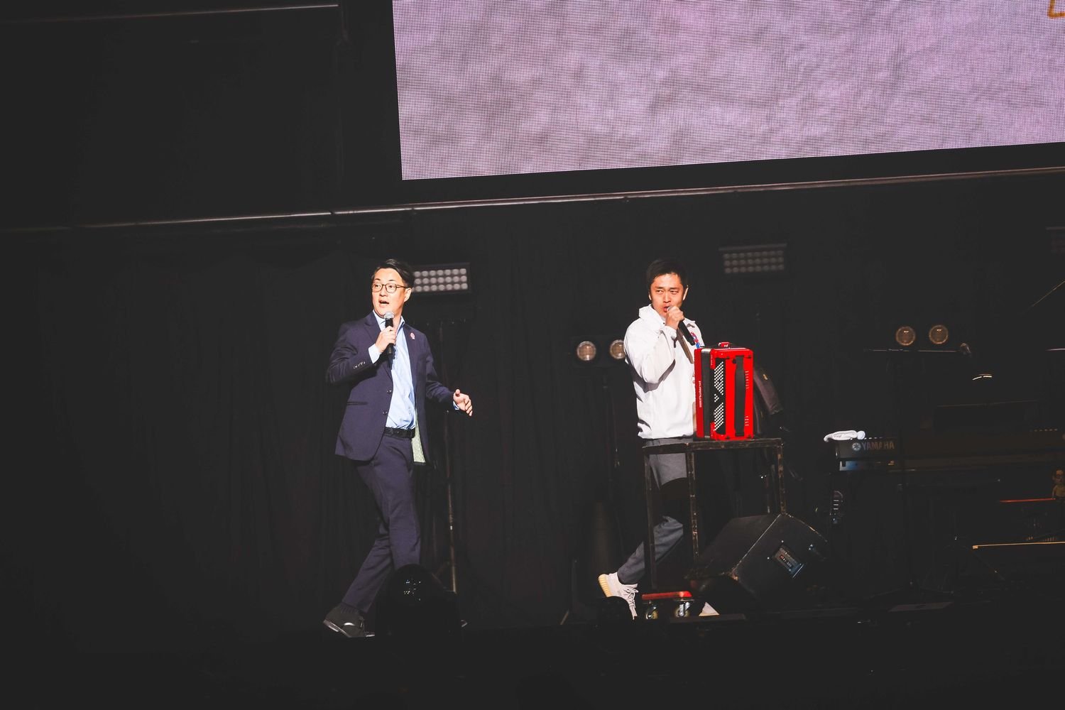 イベントのMCである大阪のラジオ局・FM802のDJ中島ヒロトとシンガーソングライターの近藤夏子が開演予定時刻の16時ちょうどにステージに現れると大きな拍手が! イベントの趣旨が歯切れのいいトークで説明された後、主催を代表して大阪府知事の吉村洋文と大阪市長の横山英幸、そして大阪・関西万博の公式キャラクターであるミャクミャクがサプライズで登場! 吉村知事と横山市長は大阪国際文化芸術プロジェクトや大阪・関西万博について触れて「大阪の文化芸術や音楽の力で大阪を盛り上げていきたい。万博会場にも是非来てほしい」「万博後も大阪の街を音楽やアート溢れる街にしていきたい」と今後の文化芸術事業への意気込みを語った。