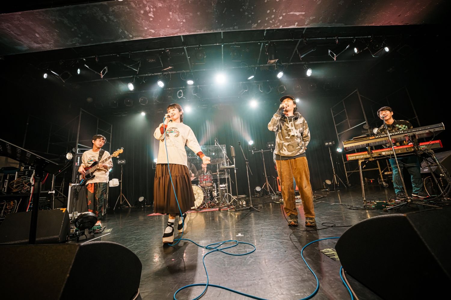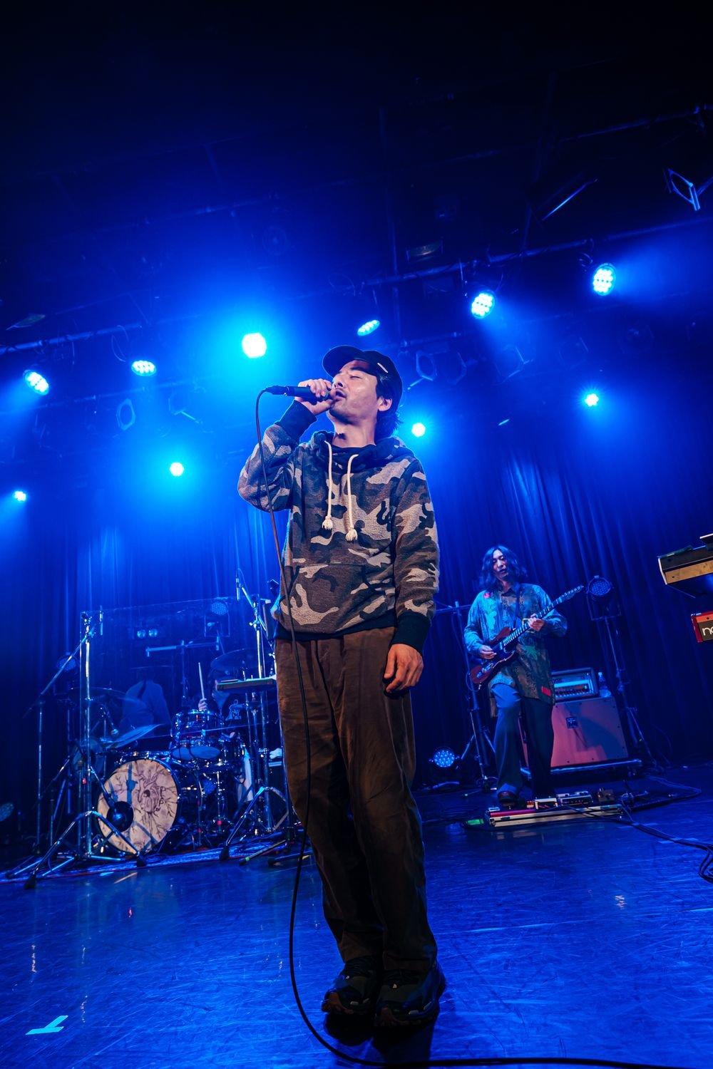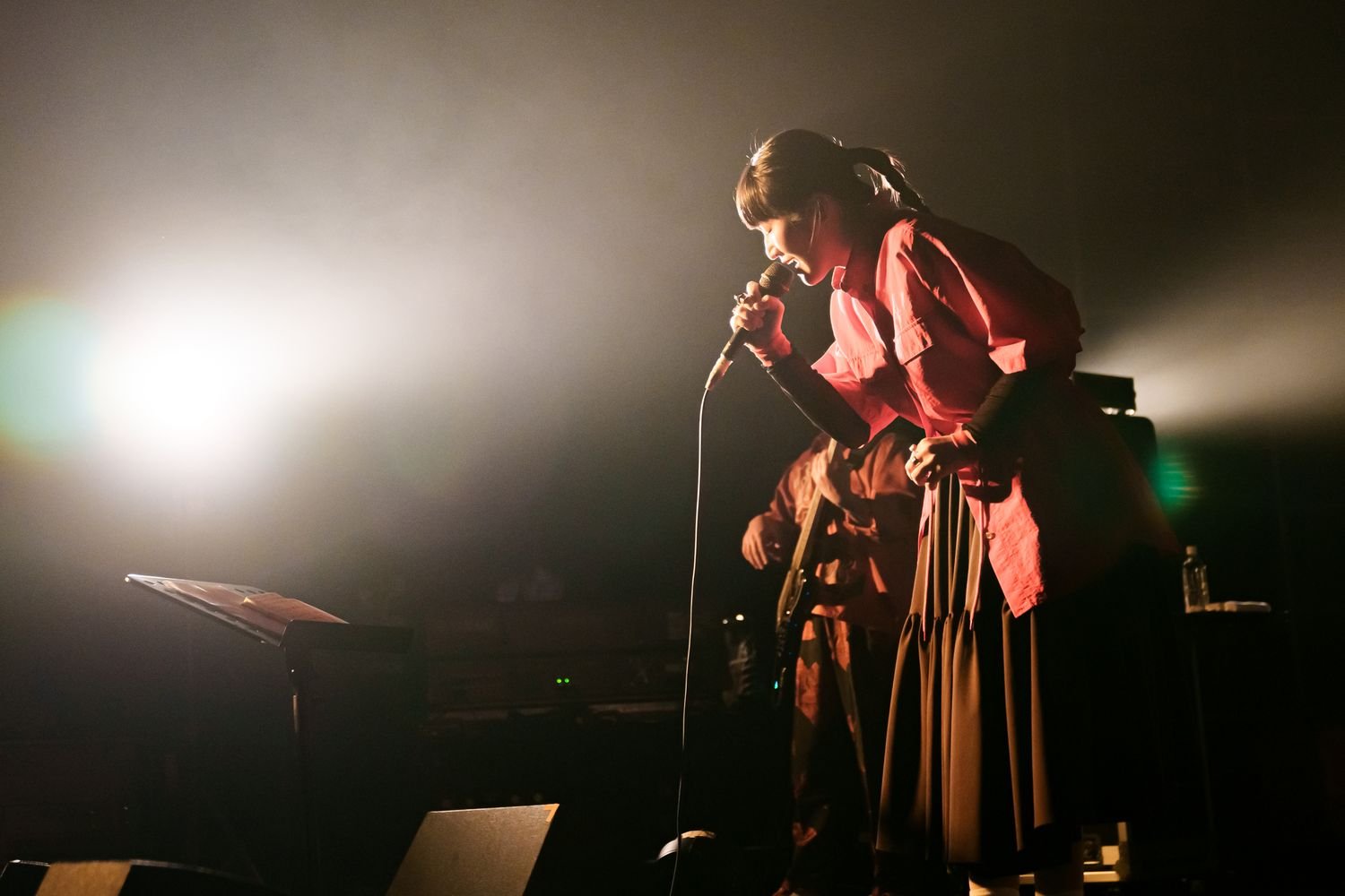 「旅人さんの声は天国みたいだなって、ご本人にも伝えました(笑)。旅人さん、そして、みなさんとここで出会えたことがうれしいです」という大胡田なつき(V)のMCを挟み、最新アルバム「カリギュラ」収録曲から「トゥパリタ」を披露。さらに七尾旅人の楽曲「DAVID BOWIE ON THE MOON」をカバー。浮遊感と壮大さを併せ持ったバンドサウンド、ホーリーな雰囲気のボーカルによって大らかな感動へと結びついた。
