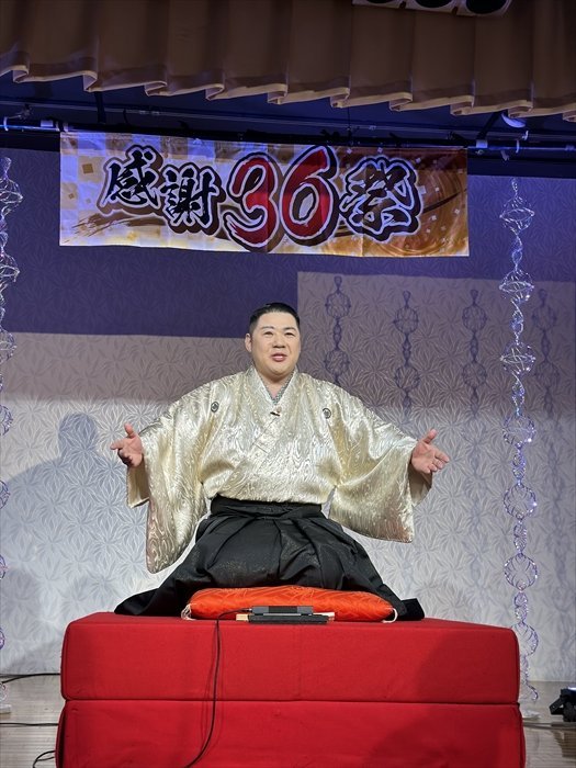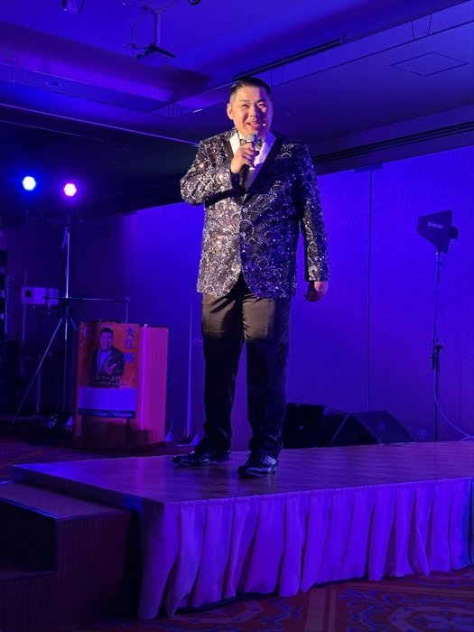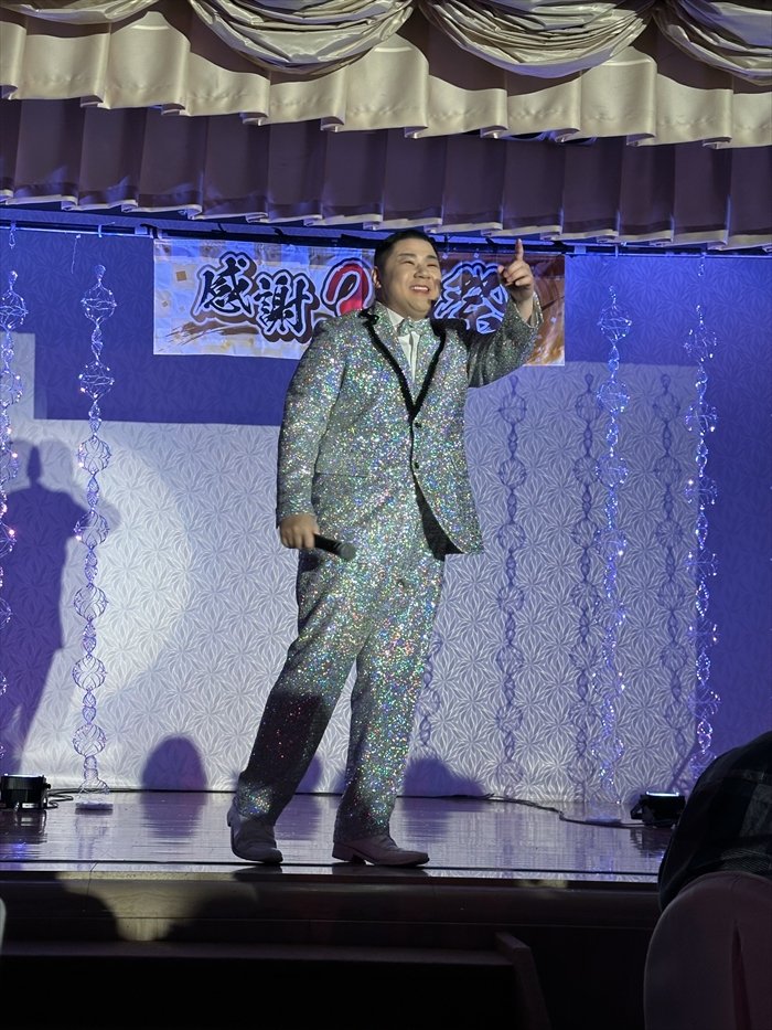 「ご来場いただきまして誠にありがとうございます。今日は私の誕生日です。ようこそお越しいただきました。早いものでお母さんのお腹から出てきて36年経ちます。19歳で歌手になりまして、故郷に帰ってコンサートができることに感謝し、まごころを込めて唄わせていただきます。どうぞ最後までごゆるりとお楽しみください。デビューしたのが2009年、北島先生に作っていただいたのろま大将を唄わせていただきます。」