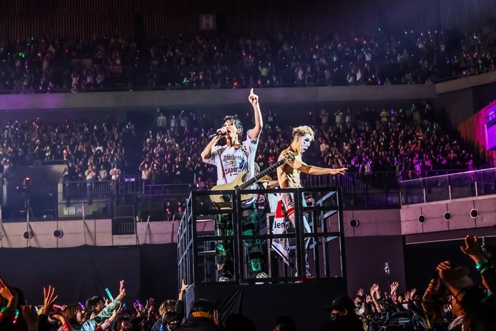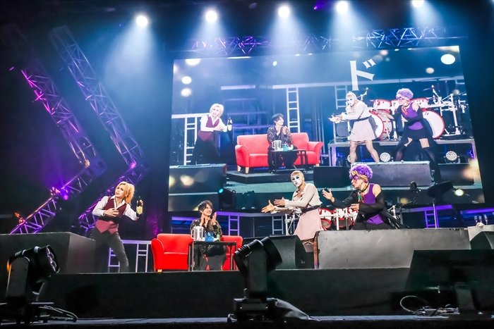 企画動画や恒例の演劇パートを挟み、後半では某ダンス&ボーカルグループ風に扮して「今夜はトゥナイト」をパフォーマンス。「まさし」「かまってちょうだい///」の曲中にはトロッコに乗って客席を巡り、続く「†ザ・V系っぽい曲†」ではヘドバンで圧巻の一体感が生まれ、「リフォビア」で本編は締めくくられた。