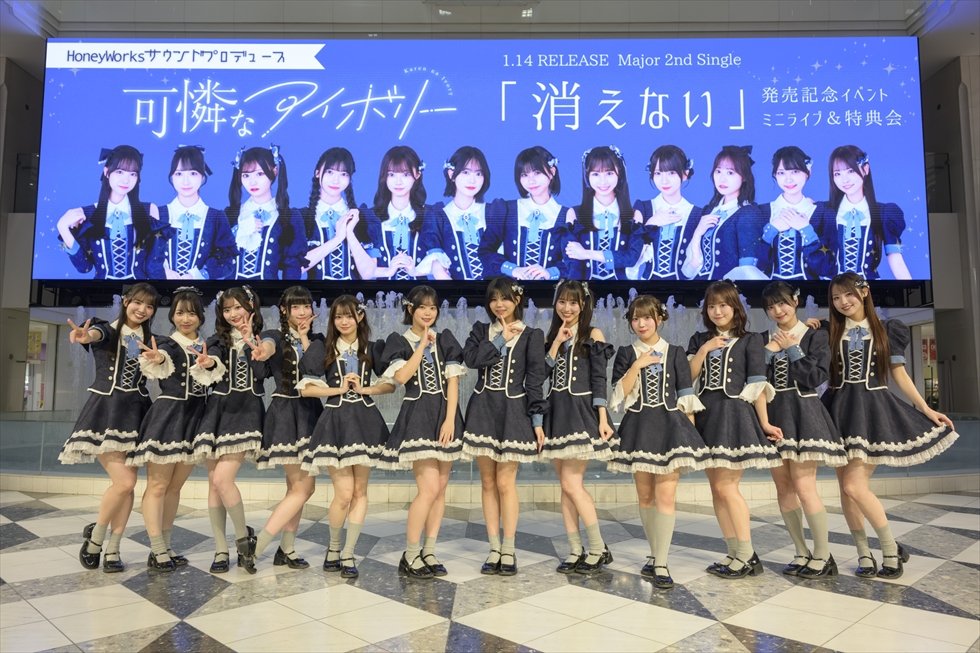 クリエイターユニット・HoneyWorksがサウンドプロデュースを務めるアイドルグループ・可憐なアイボリーが、メジャー2ndシングル「消えない」の発売日である2026年1月14日(水)、池袋・サンシャインシティ 噴水広場にてリリースイベントを開催した。