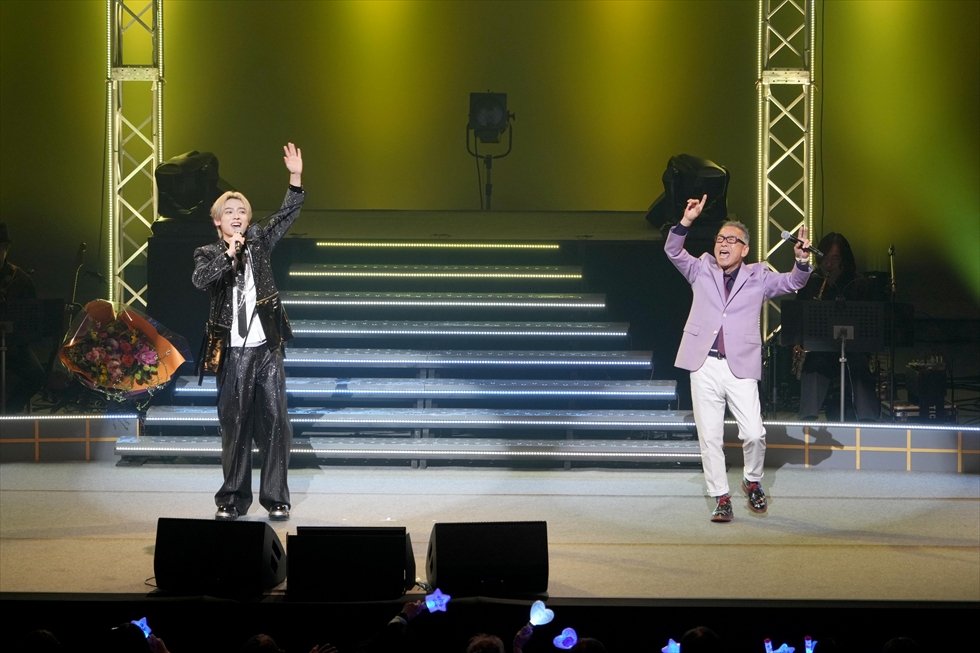その中で、1月9日から配信がスタートした「百人力」を歌唱するシーンでは、「夢想花」の大ヒットで知られるシンガー・ソングライターで、同曲の作詞・作曲を手がけた円広志が花束を持って応援に駆けつけ、コンサートでは初のコラボが実現。
