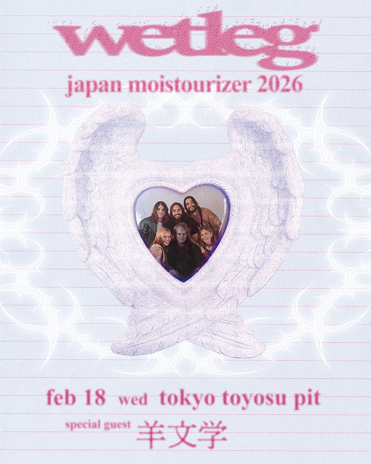 ウェット・レッグは最新アルバム『moisturizer』が第68回グラミー賞で3部門、ブリット・アワード2026では2部門にノミネートされ話題奮闘中。2023年2月の大阪・東京での初来日ツアーでは全公演ソールドアウトさせ、民放TVの朝のワイドショーでの生ライヴ出演やサマーソニック出演など、日本でも大きな話題と熱狂を巻き起こした。