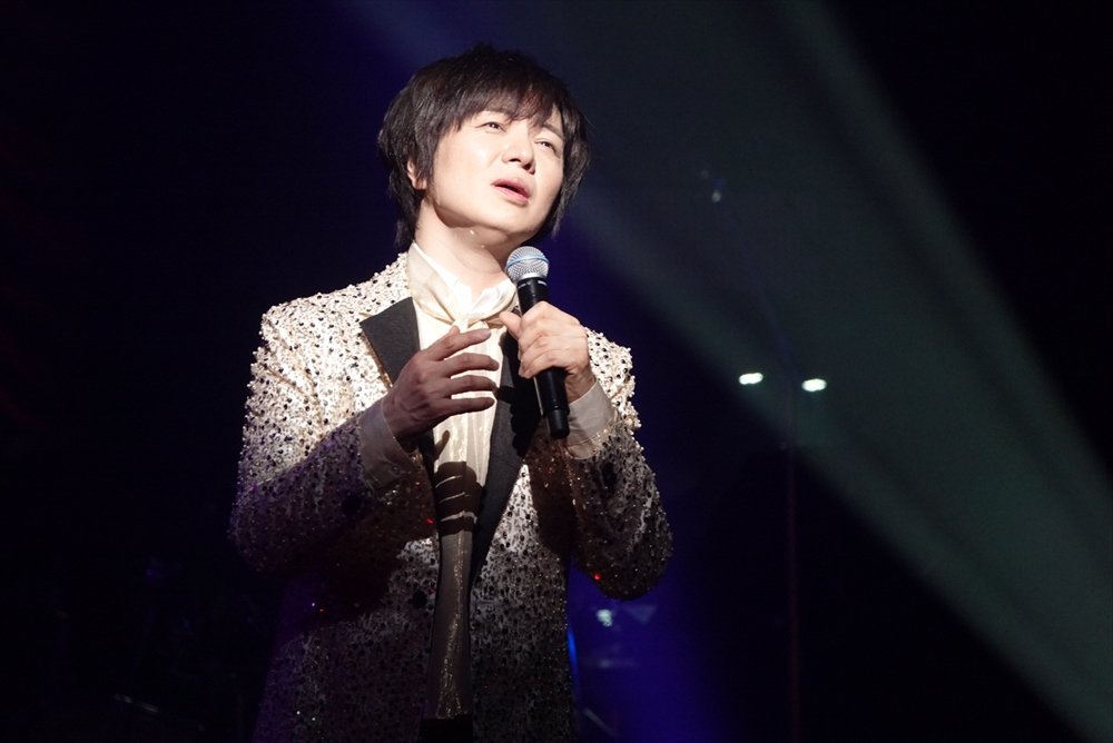また後半には“色褪せない映画の世界”を題材にしたコーナーも繰り広げられた。「日本語の歌詞でも四苦八苦する自分が、全編英語詞の歌にチャレンジしました。寝ずに練習を重ねてまいりました」と笑いを誘いつつ一転『Moon River』『Love Is A Many Splendored Thing』『Can`t Help Falling in Love』といった誰しもが知る極上の映画音楽をしっとりと歌い上げるとファンからは感嘆の声が多く上がった。