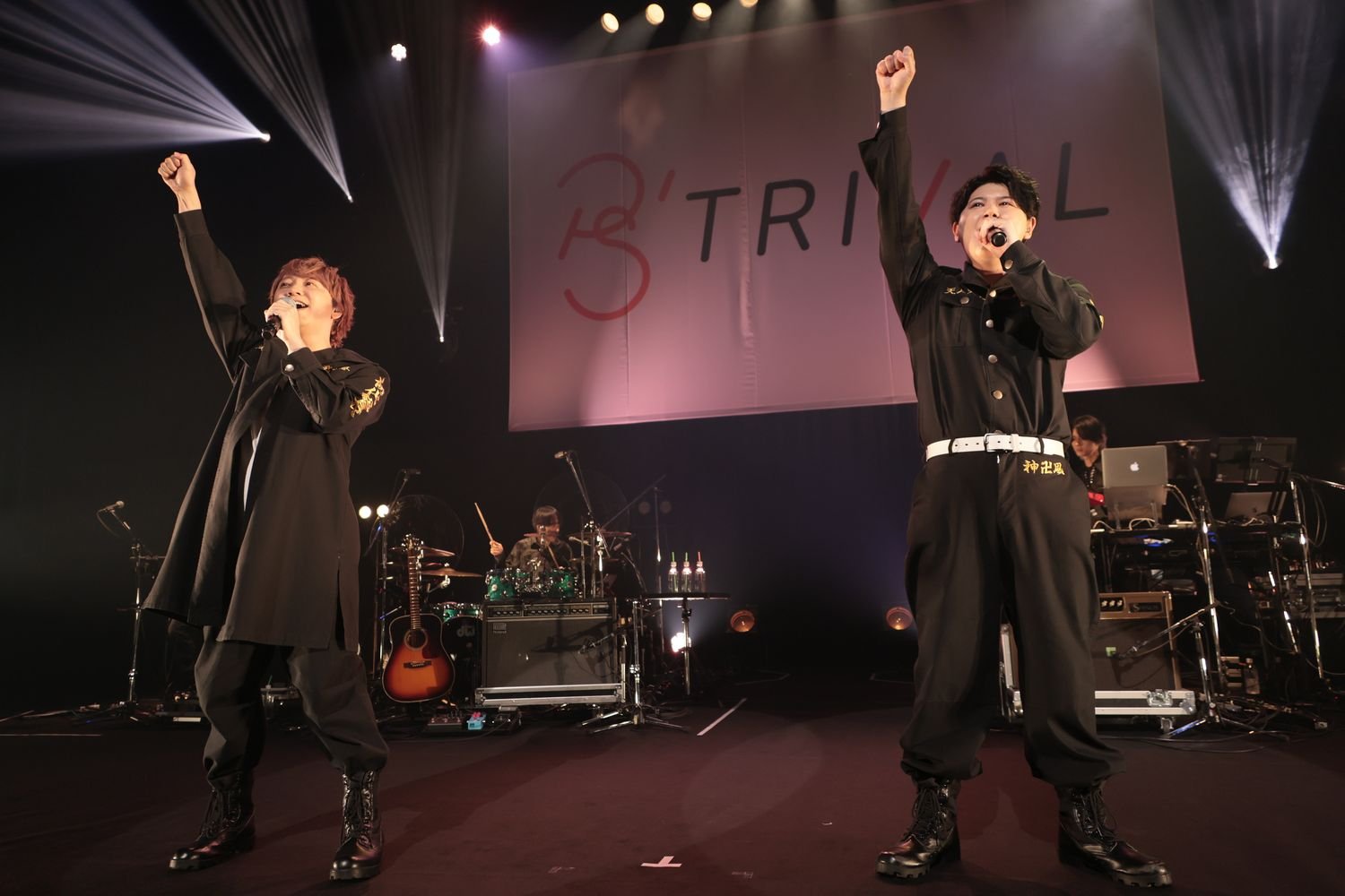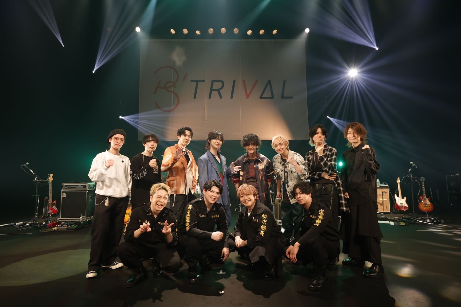 『P’s TRIVAL』は、レーベルメイトとしての仲間-TRIBE- であり、切磋琢磨していくライバル-RIVAL-でもある、 3組-TRI- のアーティストによってどんな化学反応が起きるのかを試していく -TRY-、実験的3マンライブ。3月開催の『P’s TRIVAL 01』に続く今回の『P’s TRIVAL 02』には、土岐隼一、伊東健人、TVアニメ『 東京リベンジャーズ』 から新 祐樹(花垣武道 役)、林 勇 (佐野万次郎 役) 、福西勝也 (龍宮寺堅 役) 、水中雅章 (場地圭介 役) 、土岐隼一 (羽宮一虎 役) が出演。オープニングアクトはOrJourneyが担当し、 男性アーティストの魅力や貴重なコラボステージで大いに盛り上が った。
