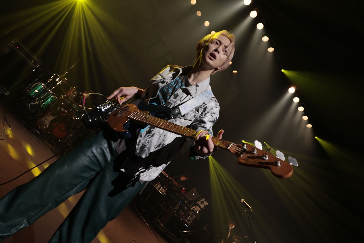 「楽しんでいきましょう!」と叫び、 まずはバンドの熱い演奏とともに3月より先行配信されている「 理由のない光」を披露。 強さと爽やかさが印象的な歌声でみんなのテンションを上げていけ ば、そのまま「笑うことに理由なんていらない」へ。 どちらも5月27日リリースの2nd EP「Blast」に収録される楽曲で、 腕を突き上げたり前方に出て盛り上げたりしつつ、 熱いステージを繰り広げる。曲後に挨拶をすると、 OrJourneyラストは彼らの代表曲のひとつ「Get Swag」。 激しい演奏と歌声にライブならではのライティング演出が加わり、 激アツ空間を創出。 見事なオープニングアクトで自分たちの魅力をみせつけてくれた。