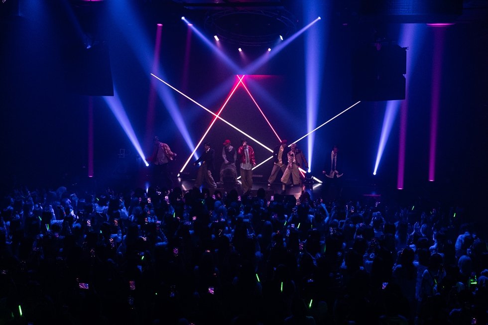 中盤では、ユニットやポジションごとのパフォーマンスを通して、メンバーそれぞれの進化にフォーカス。小波津志(こはつ・こころ)とWEESAによる「アシンメトリー」では、客席に花束を手渡すサプライズ演出も飛び出し、思わず黄色い歓声が上がる。続く「Dream Flight」は、小波津と渡邉廉(わたなべ・れん)による未リリース楽曲。デビュー当初はラップを担当していた渡邉が、今やボーカルの柱の一人として聴かせる甘く伸びやかな歌声と、小波津の透明感あるボーカルが重なり、美しいハーモニーを描き出した。