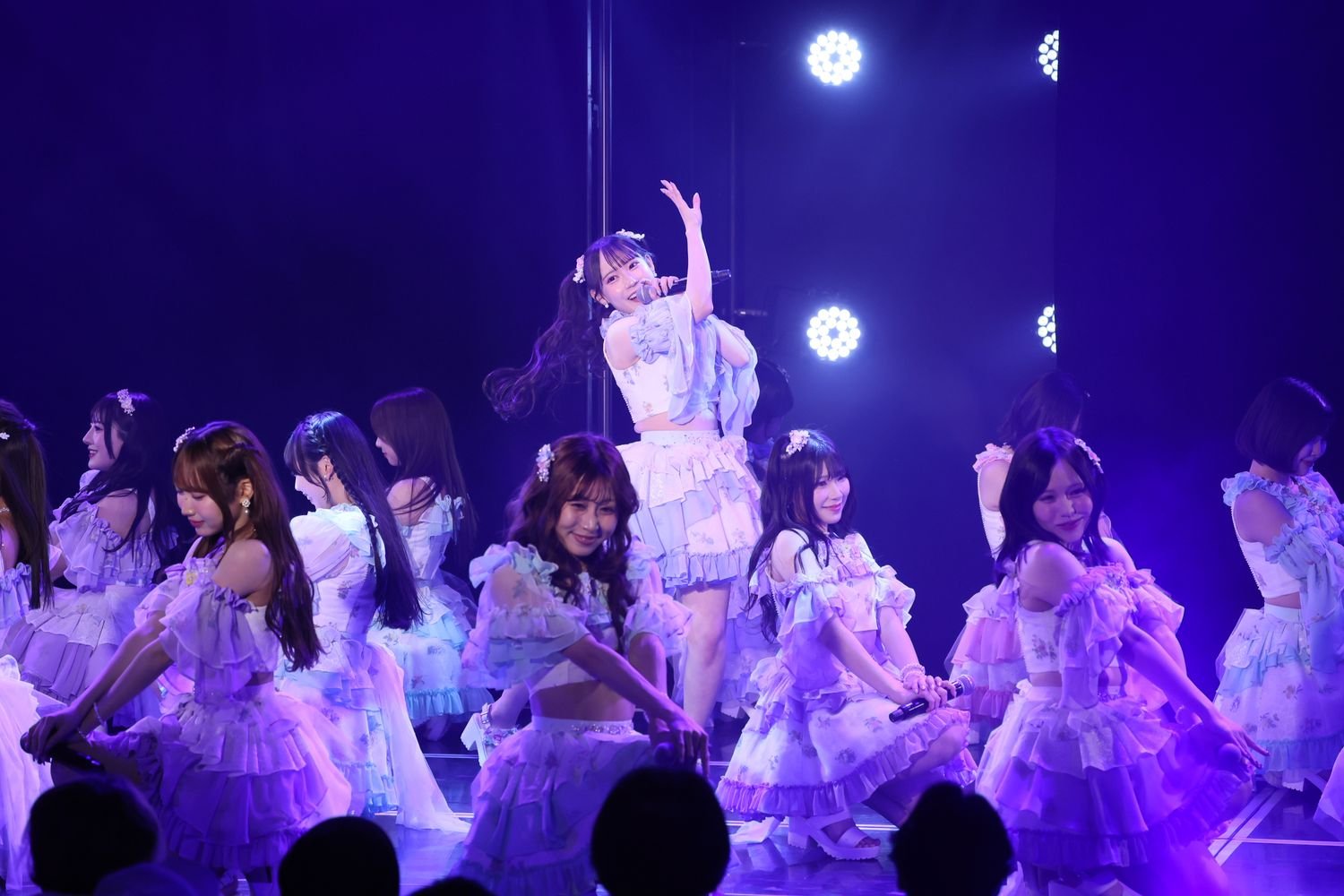 続いてTYPE-Bカップリング曲「放っておけないよユニコーン」を披露する白組は、長谷川雅をセンターに、カラフルなパステル調の衣装で登場。「ポップで耳に残りやすくてカワイイ楽曲」という長谷川の言葉どおり、ユニコーンのツノをイメージしたポーズが印象的な可愛らしいダンスで惹きつけました。