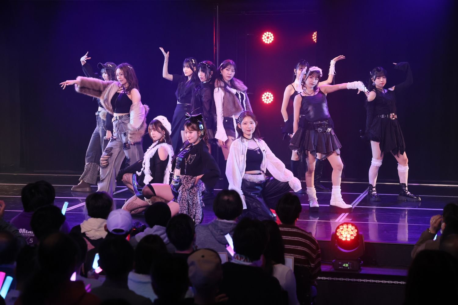 TYPE-Aカップリング曲「コスプレイヤー」は、黒を基調としたシックな衣装の紅組メンバー11名が披露。ダンスに定評のある篠原京香をセンターに、クールなパフォーマンスで魅了します。青木莉樺は魅力ポイントを「舞」とし、「ダンスはもちろん、楽曲にもちょっと日本舞踊っぽいところもある」と説明。篠原は「バキバキダンスに注目してください」と呼びかけ、MCを務める坂本真凛と太田彩夏は「一昨日振り入れしたんだって!」と、直前すぎる振り入れだったことに驚愕した表情を見せました。