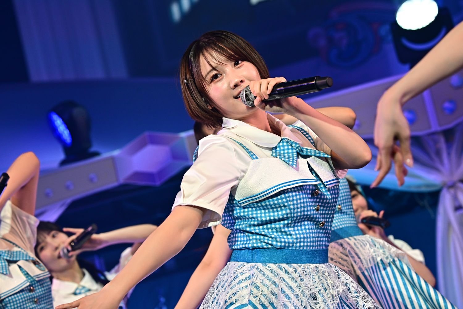 第2部では“THE STU SHOW”のタイトルで、STU48 の楽曲のみで構成。初お披露目の新制服で登場すると、「僕たちはシンドバッドだ」「無謀な夢は覚めることがない」を立て続けに披露しスタート。2024年6月にKLP48に移籍し、今年3月からSTU48に復帰した甲斐心愛が復帰後初めてファンの前でステージに立ち「みんな、ただいまー!2年間のKLP48での活動を経て、成長したところをSTU48にいっぱい還元できるように頑張ります!1年生になった気分で挑みますのでよろしくしくお願いします!」と挨拶し大きな歓声につつまれた。