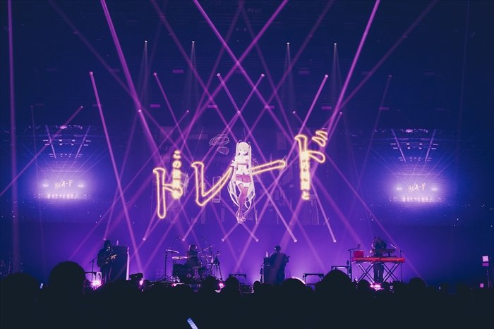この日が初ライブとなったDREAMERSのステージは、4人が制作したボカロ曲を自らの演奏で届けるというスタイル。特にsyudouがドラムを人前で披露する機会はこれまでほとんどなかったはず。演奏は目を見張るほど巧みで力強い。続いてはAyase作曲の「幽霊東京」。ツミキ、syudouの出会いのきっかけになったという一曲だ。こちらは初音ミクによる歌唱。この日のVOCALOIDキャラクターたちはクリプトン・フューチャー・メディア協力によるオリジナルの3Dモデルの映像での登場だ。