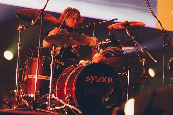 序盤のMCでsyudouは「僕を初めて観る人もいるんじゃないかと思います」と投げかけ、「初めて観る人?」と促すと会場のあちこちで手が上がる。改めて「モテるために音楽を始めた」という自身の原点を明かしつつ、親交の深い仲間が集ったイベントを形にしたことに「少なくとも僕の友達のアーティストからはモテ始めたんじゃないかと確信しています」と笑顔を見せる。そして表情を引き締めて「馴れ合いに来たわけじゃない。俺がここのトリをやるのに相応しいアーティストだっていうのを見せつけに来ました」と告げる。