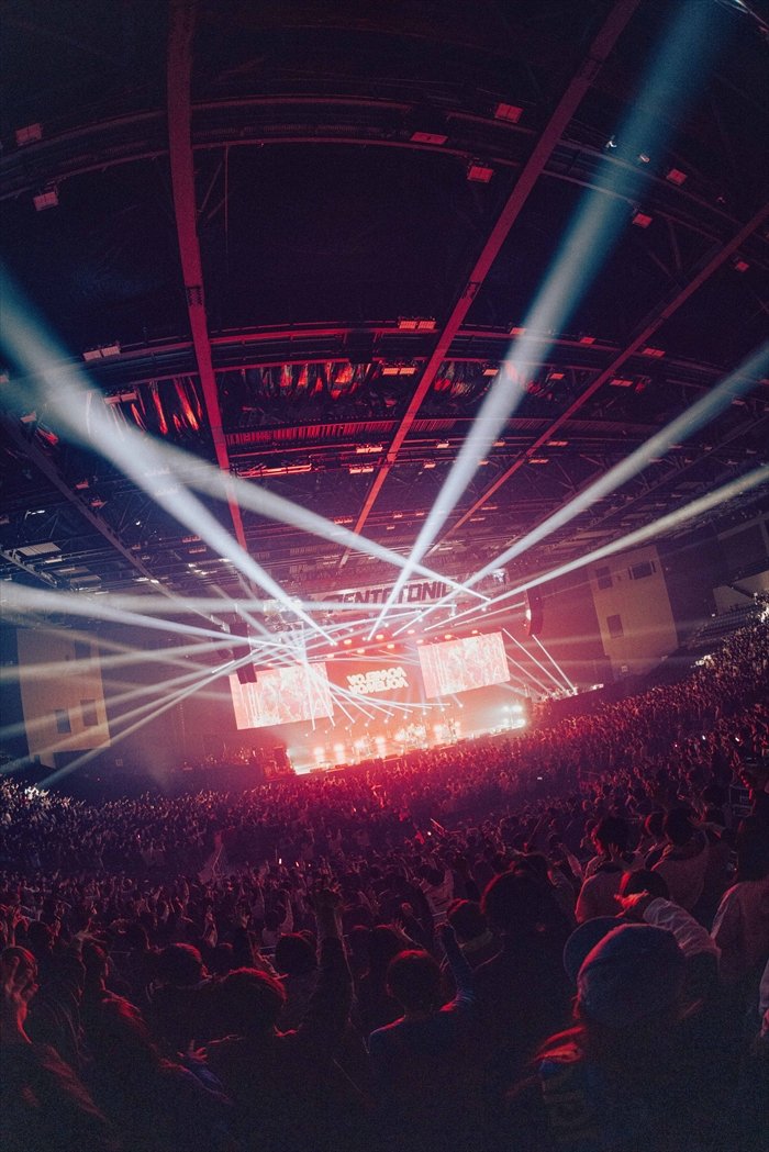 盟友として思いを表明しつつ、しかし、ただの“仲良し”で終わらないのが彼らだ。「対バンイベントなんで、YOASOBIが優勝して帰ろうと思います」という宣言から「セブンティーン」へ。「デカい声が聞きてえなあ!」という煽りに応え、フロアから大きな歓声が上がる。「PLAYERS」では「もう一回、もう一回」のコールが会場をひとつにし、彼らのサウンドのとてつもない迫力とエネルギーが数千人を揺らす。