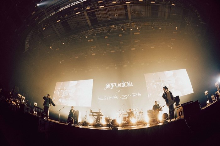 アンコールを求める大歓声の中、ステージにsyudouとともに現れたのは須田景凪。どよめきが起こる中、syudou × 須田景凪の「ペンタトニック」が披露された。二人の掛け合いからサビでは声を重ね、張りのあるsyudouの歌声としなやかな須田景凪の歌声が絡み合う。この夜限りのスペシャルなコラボレーションだった。