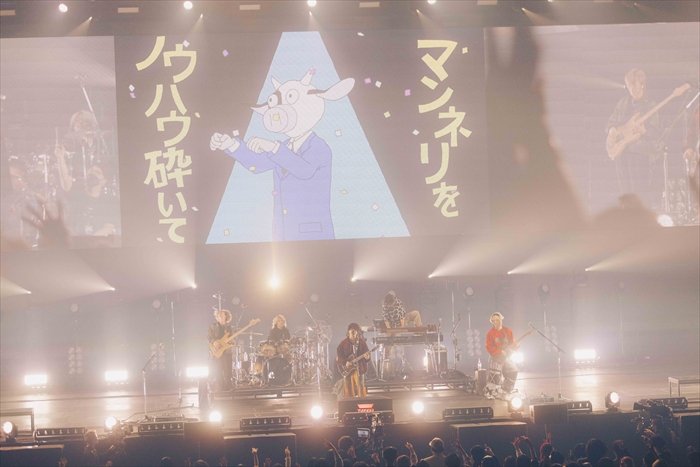 「特別な一日になると思うんで、全力で楽しんでください」と告げると、ハンドマイクで「限りなく灰色へ」を歌い上げた。「ジャンキーナイトタウンオーケストラ」では手拍子が自然と湧き起こり、「救ってくれない」では何度も客席を煽りながらテンションを高めていく。