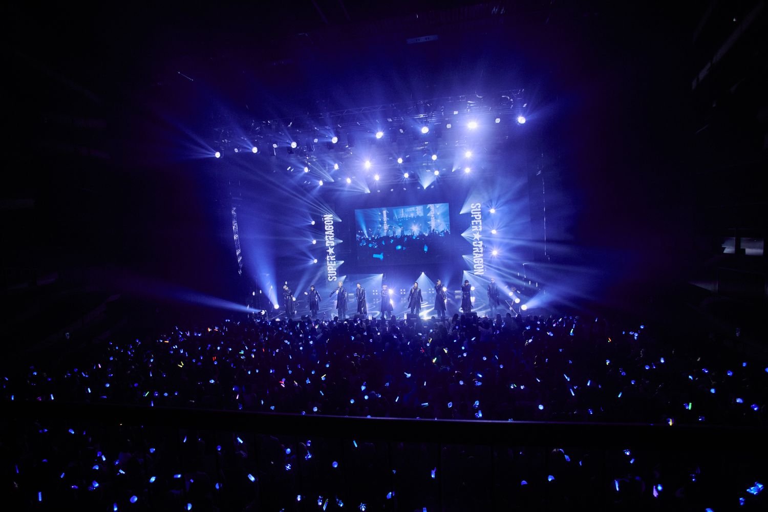 このイベントのトリを飾ったのは、9月に結成10周年を迎えたSUPER★DRAGON。メンバー全員が真っ黒なコートに身を包み登場すると、疾走感そしてパワーにあふれた「Downforce」を披露し会場の空気を一気に自分たちのものに変えた。メンバー全員の歌唱力とビジュアルが最大限に活かされた、メロウな雰囲気漂う「Hallucination of Love」では、曲の中でもメンバーたちが様々な表情を見せ、観客を魅了し続ける。
