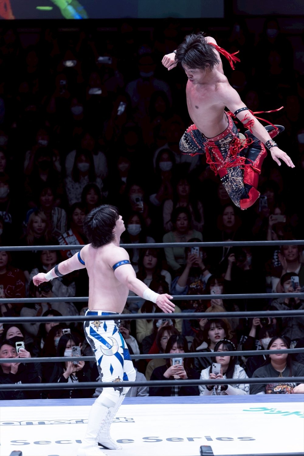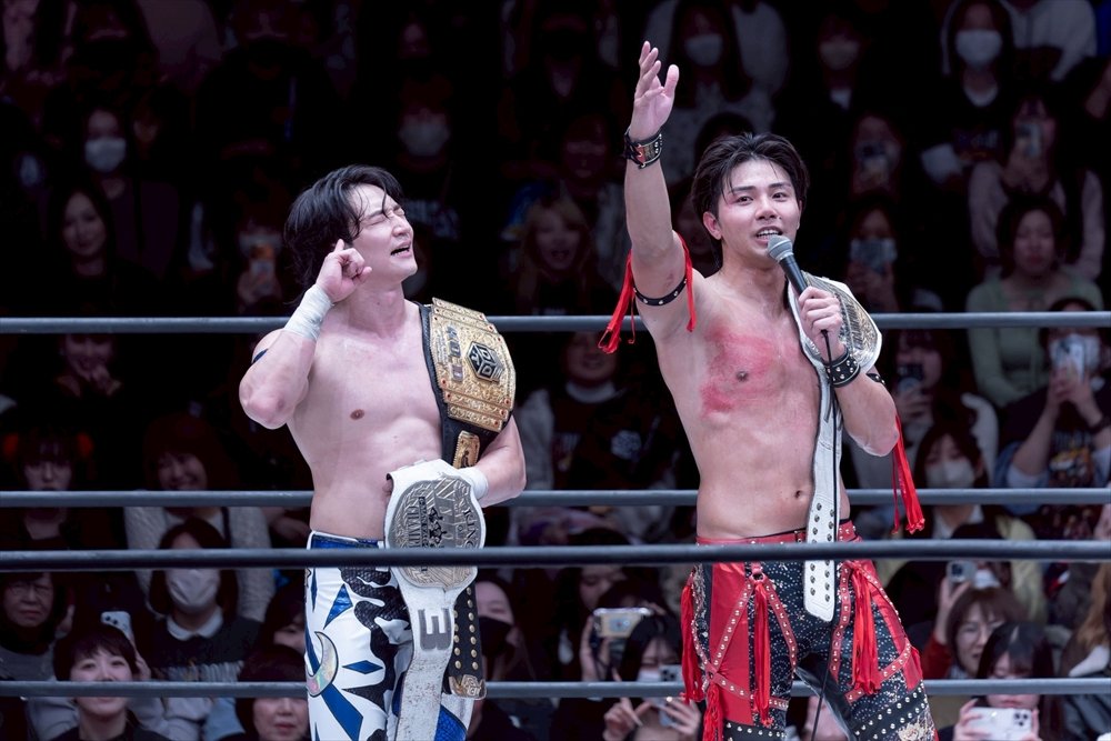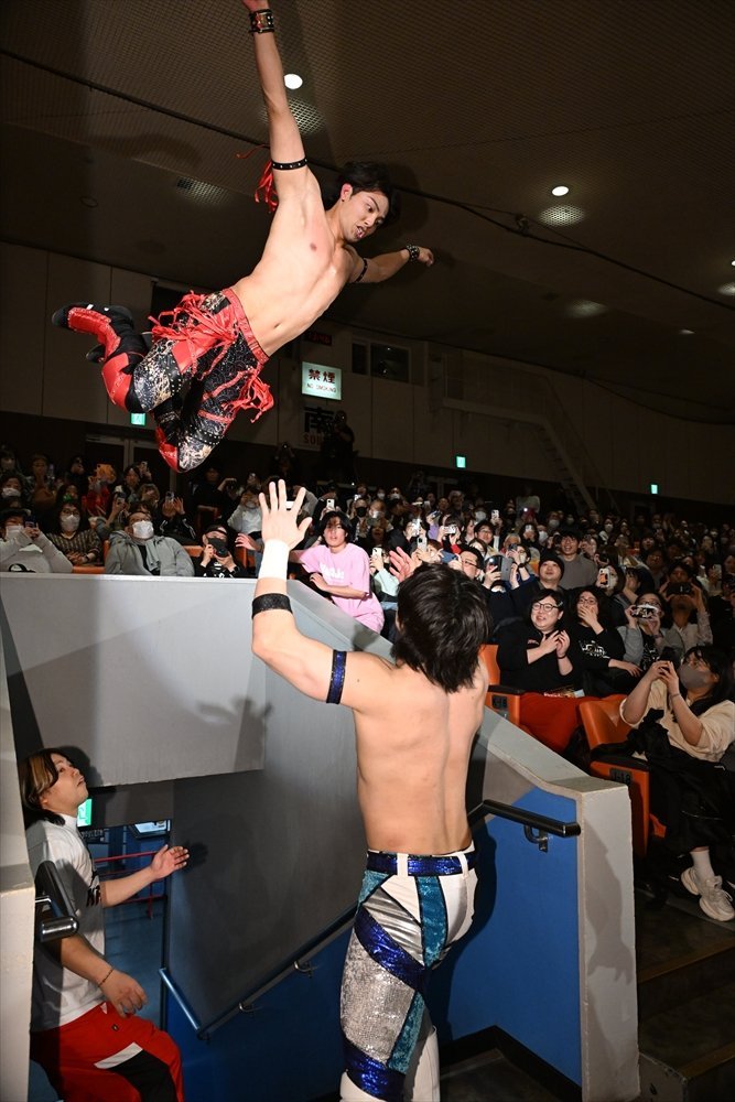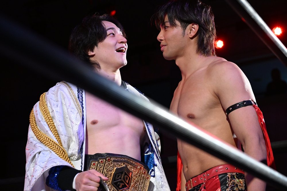 武知は2024年2・25後楽園でプロレスデビューを果たし、鮮烈なインパクトを残した。昨年6月にはプロレスラーとして、DDTに入団。同年9・28後楽園では上野、To-yとのトリオで岡谷英樹&MJポー&イルシオンとのKO-D6人タッグ王座決定戦に臨み、イルシオンに勝利。わずかデビュー5戦目で自力初勝利とタイトル初戴冠の快挙を成し遂げた。同年11・3両国国技館ではIWGP世界ヘビー級王者(当時)のKONOSUKE TAKESHITAとの夢のタッグで、樋口和貞&正田壮史から白星をマーク。同年11・19後楽園では新日本プロレスに初参戦し、1・4東京ドーム大会でのNEVER無差別級6人タッグ選手権試合(トルネードランボー)へ出場。一連の活躍が認められて、昨年12月には「プロレス大賞」(東京スポーツ新聞社制定)の新人賞を受賞した。