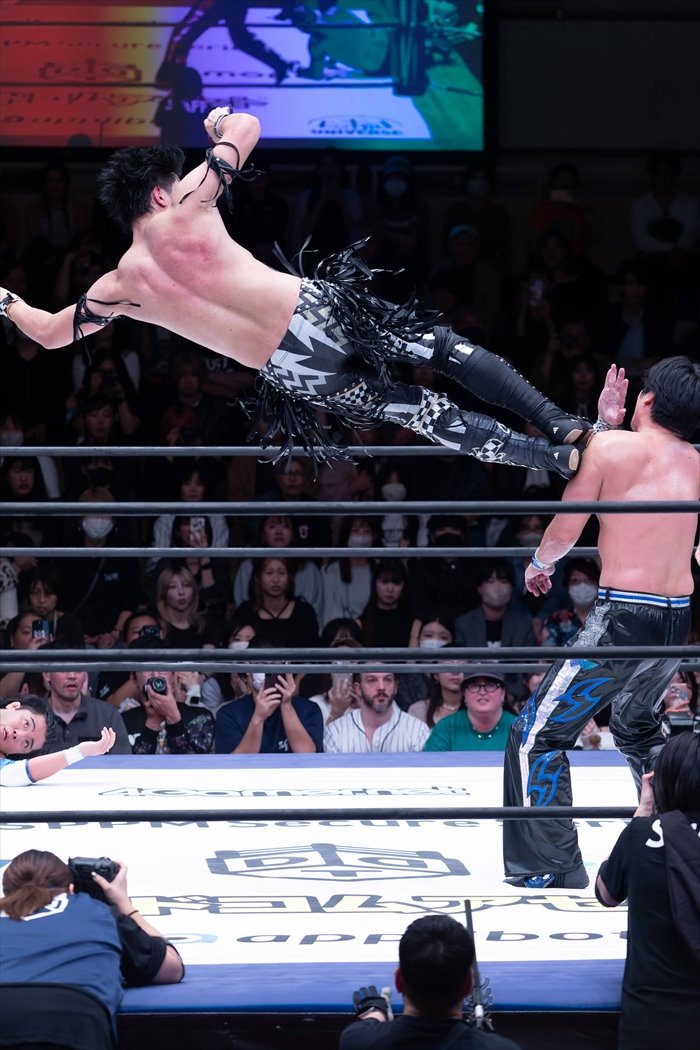 バックステージで武知は「初めて防衛することができました。人生で一度しかない経験だったので楽しかったですね。今日は初めてのことだらけで、もちろん恐怖もすごかったし、痛かったし、それを乗り越えた先に、初めて上野さんと強力な連係技ができたというのは、自分の中ですごく成長というか…。プロレスって、もっと僕が知らない面白さがあるんだなって、深いところまで少し気づいた気がします。まだまだ僕が知らない楽しさだったりとか、悔しさも含めて、幸せもそうですけど、いろいろなものがあると思うんで、プロレスには。そこに自分から足を踏み込んで、これからもたくさん浸っていきたいなって思います」と試合を振り返った。