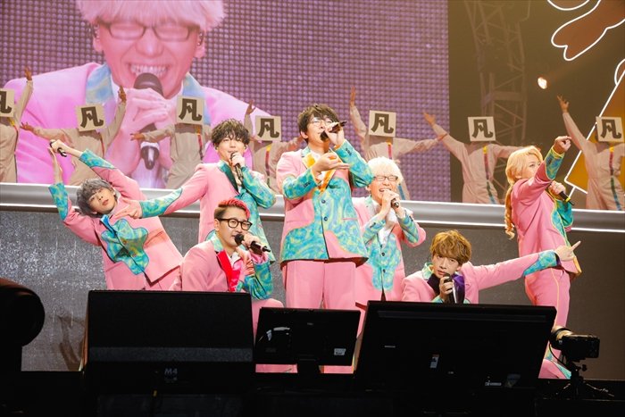 続くコーナー「富士山ガンボ」では、カリスマ声優と凡人が“質問コール&レスポンス”に挑戦。個々に好きな質問を凡人に投げかけ、凡人がやまびこ的に回答を返し存分に交流した。小野の「この世でいちばん大事なものといえば?」には「JPY!」、細田の「今日の晩メシ、何パーティー?」には「ピザパーティー!」と、回答が揃えば揃うほど“やまびこ”がはっきり返ってきて、カリスマ声優たちは嬉しそう。ただ、山中の「七人のカリスマで一番の推しは?」で、思い思いの回答が聞こえるのも味わい深く、ピースフルな空気に包まれた。よく訓練された凡人たちの、真価が発揮されたひとときと言えるだろう。