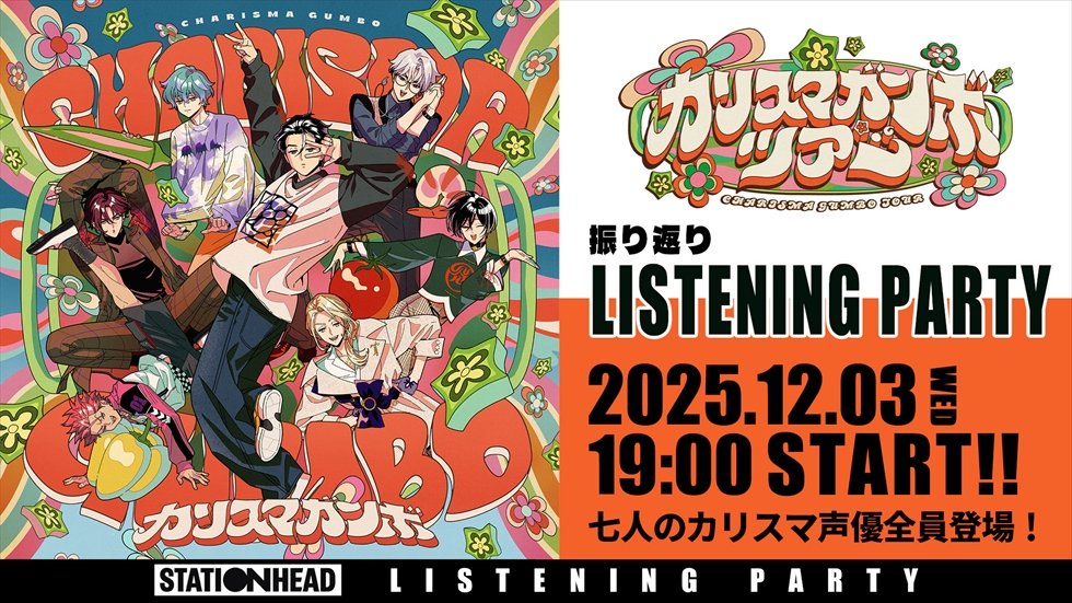 ちなみに、最後のMCパートでは、TVアニメ化を発表! DAY1でも発表していたものの、再び大歓声が会場を包んだ。また、12月3日(水)19時より「振り返りリスニングパーティー」を開催。「カリスマガンボツアー」のセットリストを聞きながら、リスナー同士がチャットで交流できるオンラインサービスで、Apple Music有料会員もしくはSpotify Premiumへ登録していれば誰でも参加可能だ。なお、今回のイベントはアプリ「Stationhead」内のキングレコード公式アカウント(@kingrecords)にて実施される。同イベントでは七人のカリスマ声優によるボイスメッセージも放送予定なので、ぜひ余韻に浸ってみてほしい。