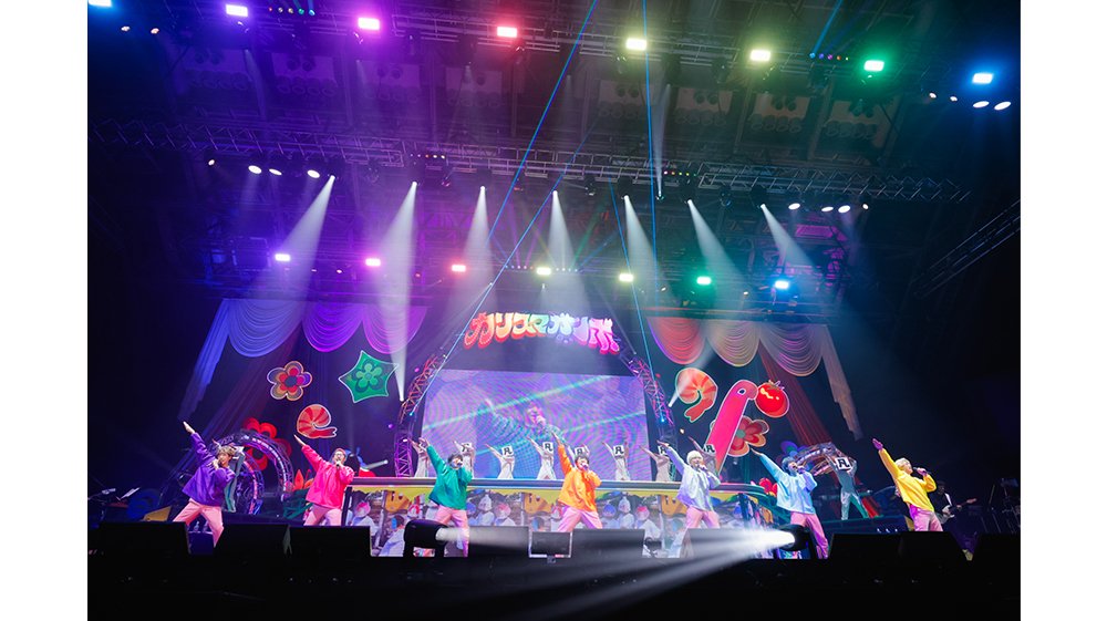 そして、『おつカリスマ!忘年会』、『カリスマジャンボリー』を、凡人ダンサーズを交えて賑やかにパフォーマンス。最後のあいさつでは、小野が「カリスマっていいな。この一言に尽きます。だから……別れたくねえなぁ(笑)。この景色をまたいつか見られるといいな」と名残惜しそうに感謝を伝え、ラストスパートへ。『超カリスマ凡踊り』では、凡人も一緒になって少しだけ時期外れの盆踊りに興じ、『めちゃめちゃカリスマ』のソロパートでもあらためて最後のあいさつ。七人全員が鍋の中に入ったところで、無事、ガンボ完食となった。