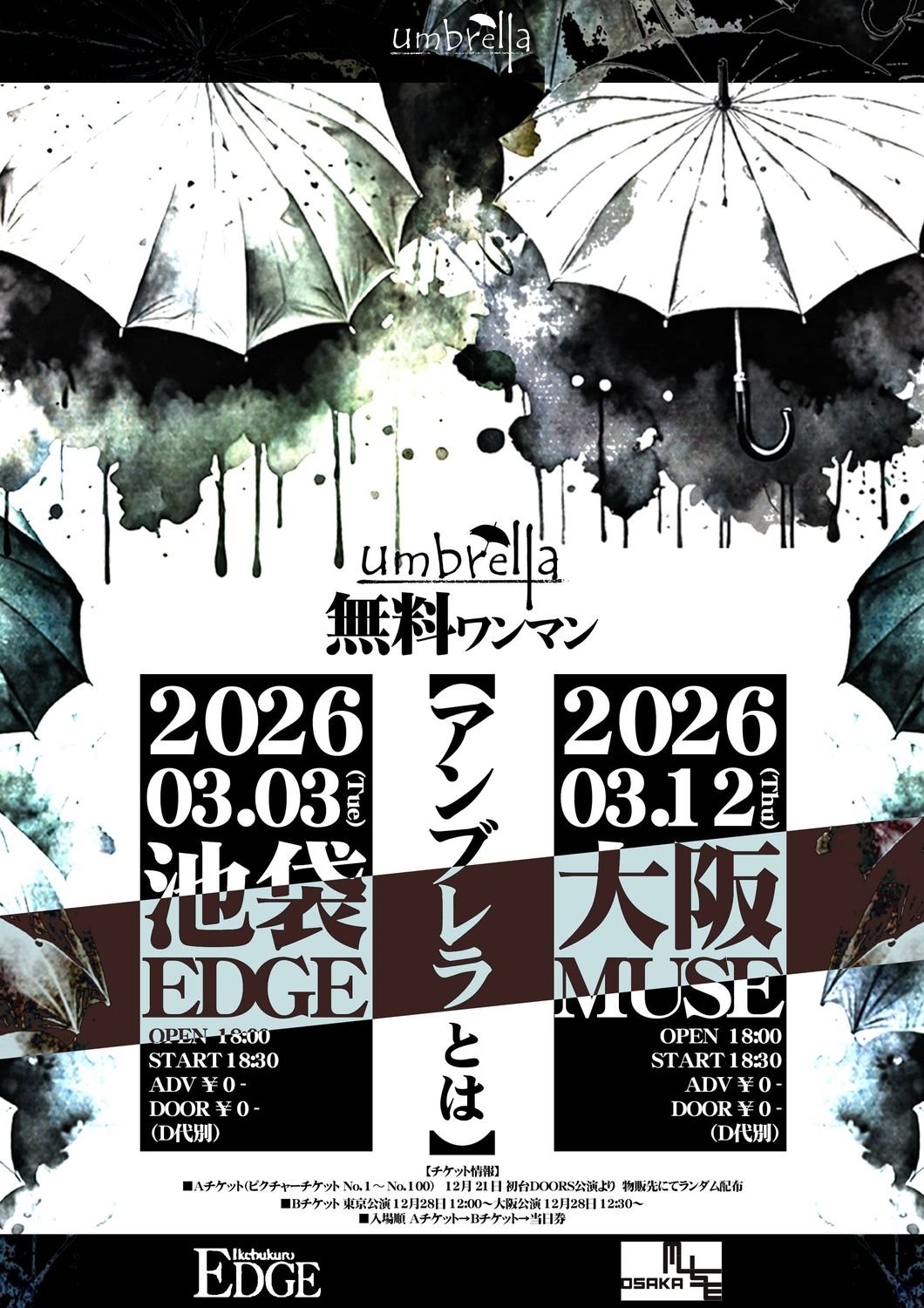 2026年3月3日(火)池袋EDGE、3月12日(木)大阪MUSEで開催される無料ワンマン 【アンブレラとは】 は、