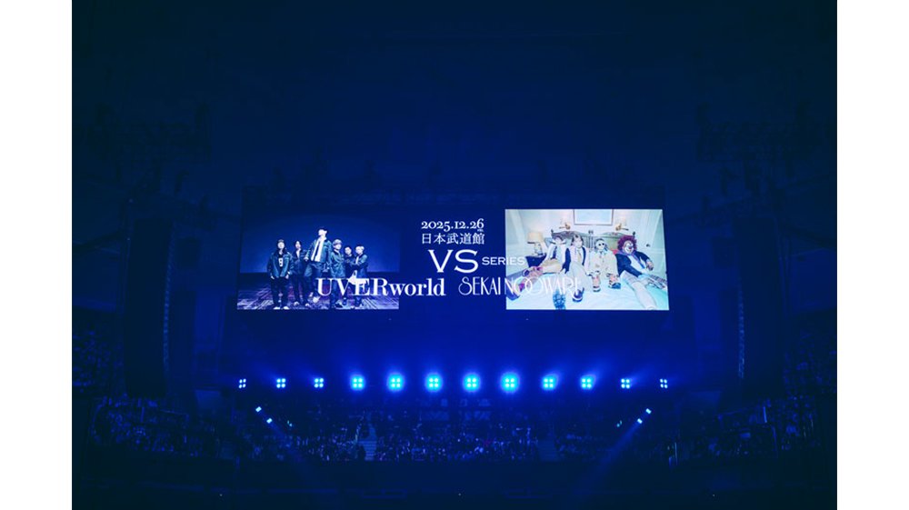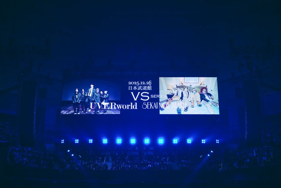 UVERworldとSEKAI NO OWARIによるツーマンライブ【UVERworld VS シリーズ UVERworld vs SEKAI NO OWARI】が2025年12月26日、東京・日本武道館にて開催、詰めかけた両バンド1万2千人のファンを歓喜の渦に巻き込んだ。