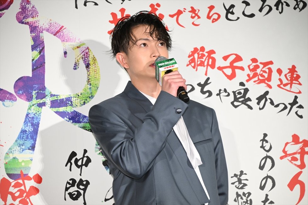 続いては、劇中で<防風鈴>の“初めての仲間”を演じ、本作のプロモーション期間を通しても長い時間を共にしてきた水上と木戸が、互いに言葉を贈り合う時間に。向かい合った二人の間に静かな緊張と温度が生まれる中、まず木戸が水上に向けて真っ直ぐに思いを語った。「水上恒司さま。座長として『WIND BREAKER/ウィンドブレイカー』の先頭を突っ走り、引っ張ってくださったこと、僕だけでなくみんな感謝しています。現場でしっかり声を上げて、僕らが気になっていることをスタッフさんや監督にきちんと届くように伝えてくれた姿は、とても心強かったです。桜遥が水上恒司で本当によかったと、楡井として心から思っています。ありがとうございました」そう言って深く頭を下げると、会場には静かな感動が広がった。