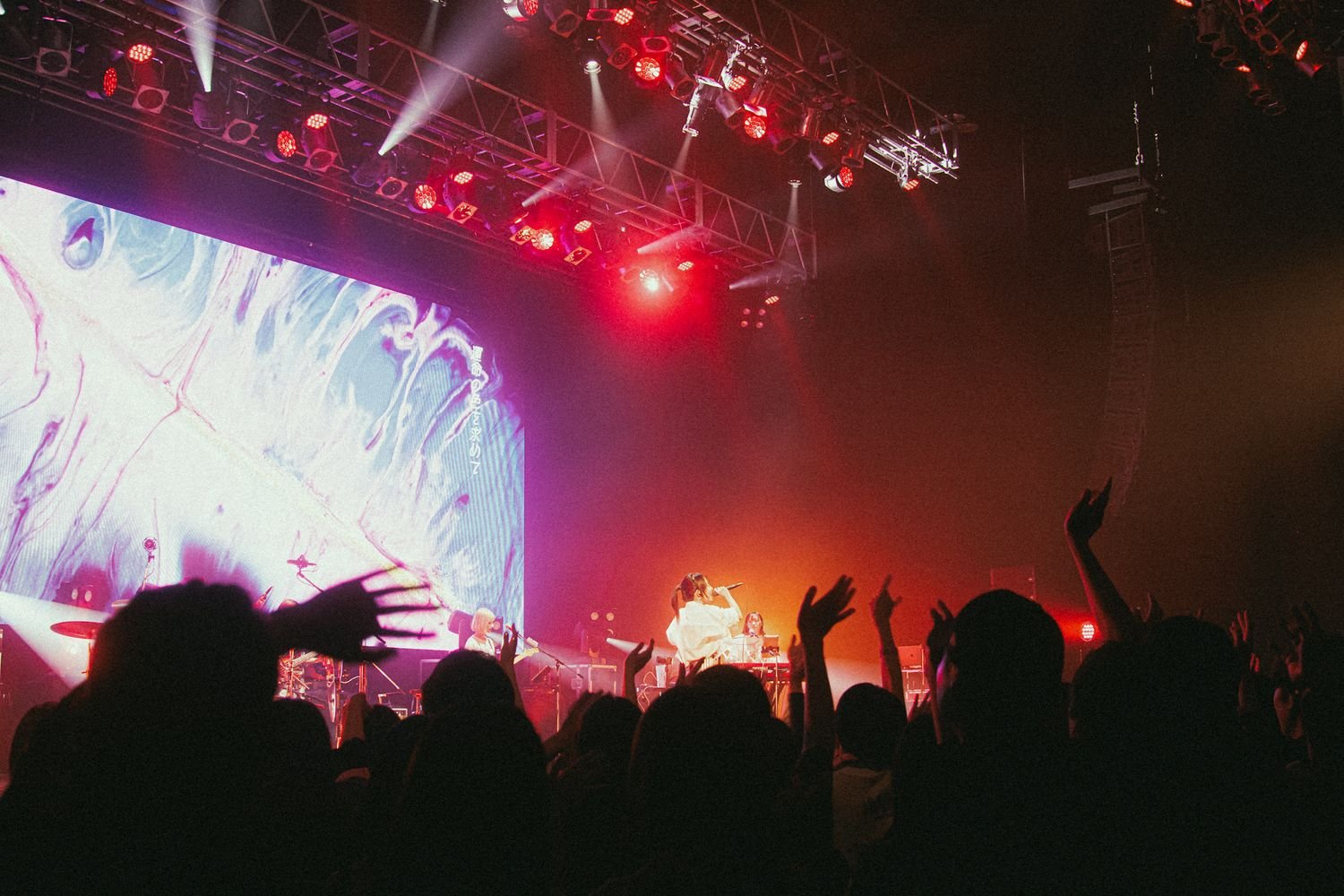 続いて、「ピンクパンチ」もツアーで初披露。リリース前からSNS上で話題となっていた同曲では、中毒性のあるビートに合わせて観客も体を揺らしていた。またこの日のMCでは、「ピンクパンチ」がカネボウの化粧品ブランド「KATE」との新たなタイアップ決定を発表。今後の活動のさらなる広がりを予感させた。