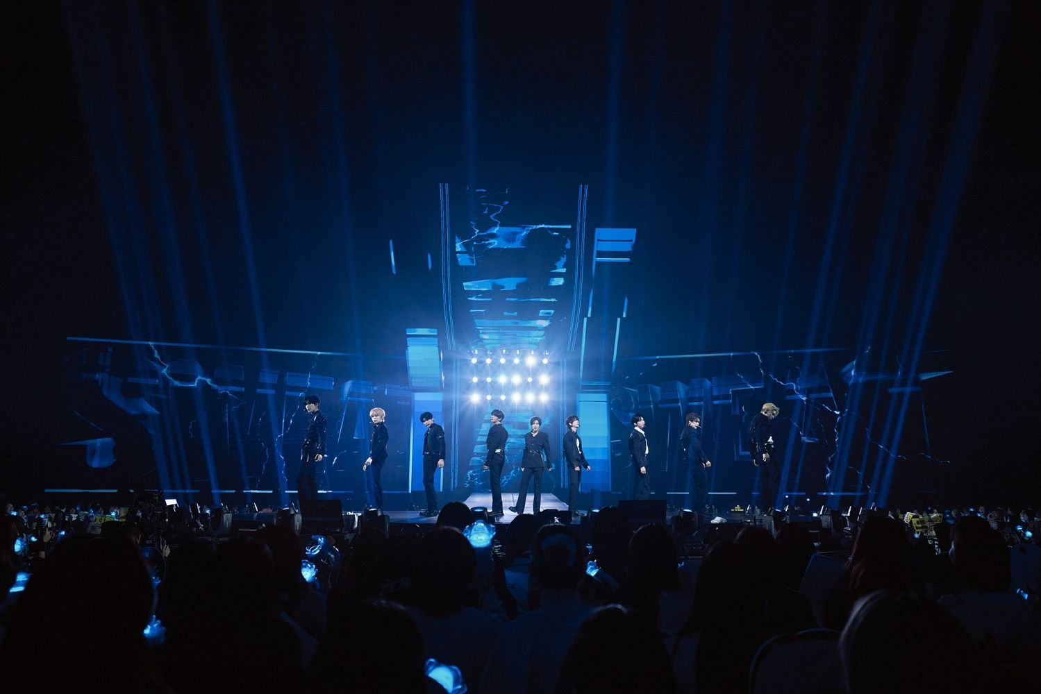 力強いメッセージに導かれ、ネイビーの衣装を纏った9人がステージに降臨。その堂々たる佇まいに、地鳴りのような歓声が上がった。