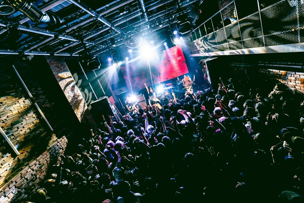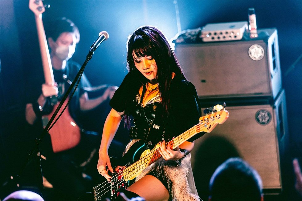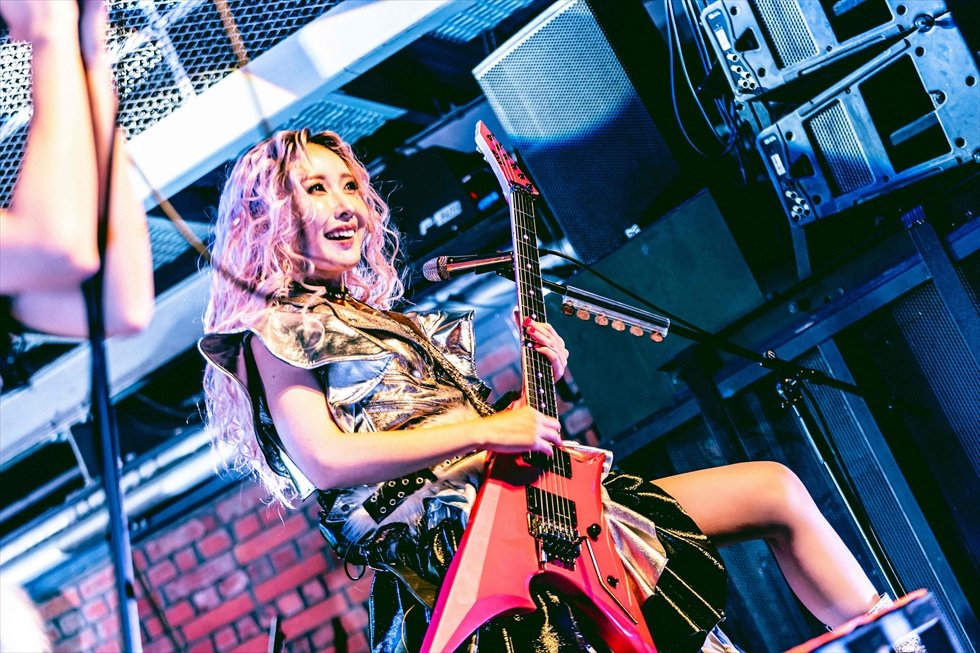 「ようやく自分のバンドでベーシストとしてステージに立てることが嬉しいです」とMihoが口を開き、「“99割”は知ってくれているであろうメタル曲」と、フロアの笑いを誘う言い間違いから、Tokiの奏でる妖しいリフへ。