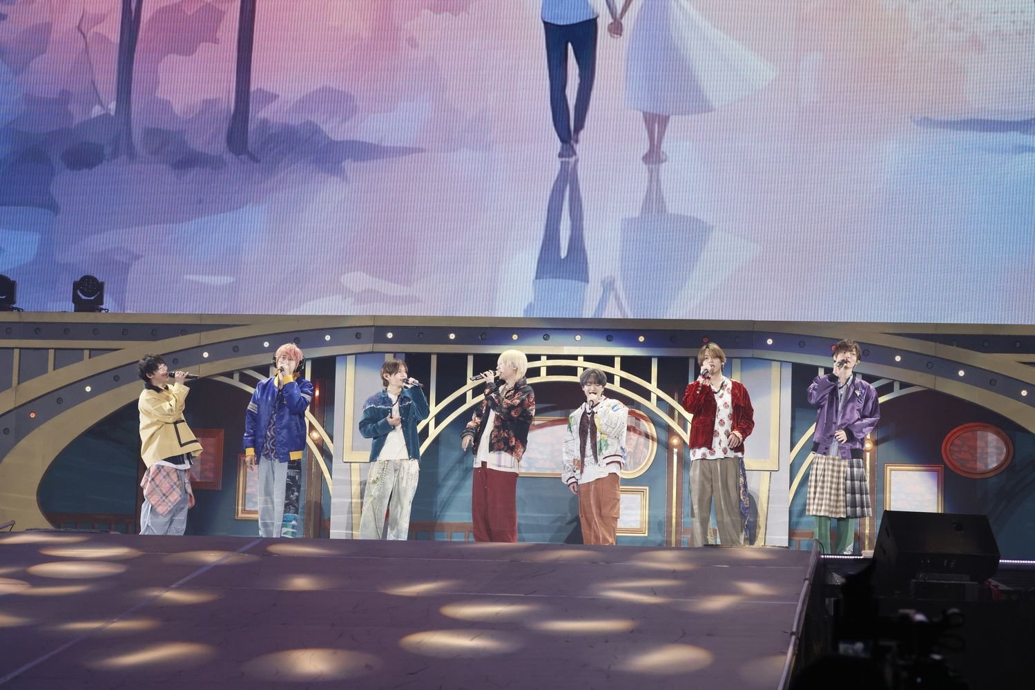 豪華絢爛でダイナミックなオープニングで始まったライブは、序盤から花道やトロッコを使い、ファンとコミュニケーションを取ったり、メンバー同士のアドリブが見られたりと、楽しげに進んでいく。ラランドのサーヤが作詞作曲を手がけた「SUPER CRUISIN'」で航海へと出発すると、7人は古代図書館にたどり着く。そこでは「encore」をはじめとするアルバム収録曲が、さまざまな演出とパフォーマンスで届けられていく。「GHOST」ではビジョンに映る映像を加工したり、制御ペンライトを活用して客席にゴーストを登場させたりと、会場すべてを使って楽曲の世界観を描き出す。