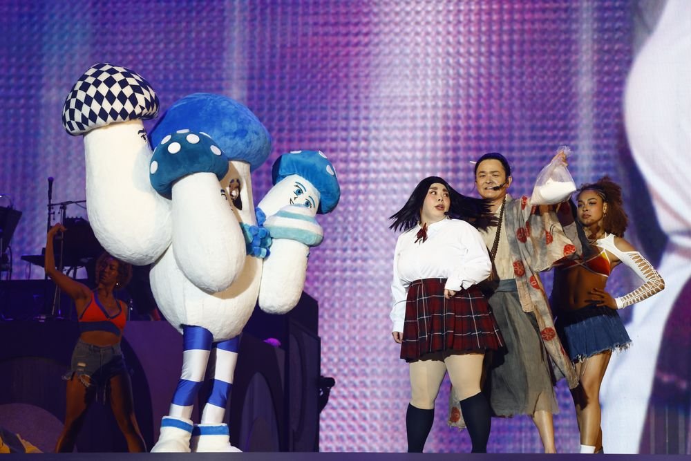 東京ドームといえば音楽のライブ。ということで、東京ドームでのイベント開催が決まってからの2年間で、渡辺は様々なことを考えてきたという。その一つとして、昨年、正体を明かさずにアーティストデビューしていたことを明かす。その曲をここで披露し「これが渡辺直美でした」と正体を明かして盛り上がることを想定しての企画だったといい、その曲を流すことに。すると……ほとんどの人が知らない曲で、場内の反応は絶妙。渡辺は「知らないでしょう?(笑)」と笑う。その曲はPeach Napというアーティスト名でリリースした楽曲「Mizu」で、MVの再生回数は2390回だったそう。ただ、この曲は英語詞だったため、その後、恋愛をテーマにした日本語詞の楽曲も作った。その曲は「Wasting Time」で、MVの再生回数は41回。「東京ドームで正体を明かしてみんなを驚かせる」という思惑は失敗に終わったが、畳みかけられるPeach Napのエピソードに客席からはどっと笑いが起きる。「母親との壮絶なエピソードを笑いにするにはお笑い芸人になるしかない」と茨城で決意した少女は、今でも、どんな出来事も笑いに変換していたのだった。