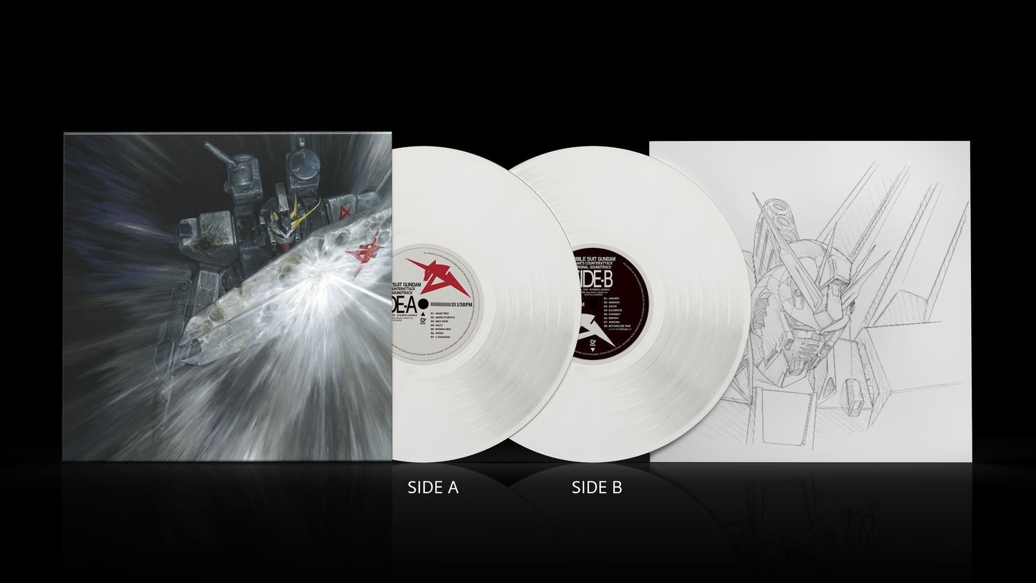 劇場版アニメーション『機動戦士ガンダム 逆襲のシャア』(1988年/監督:富野由悠季)のサウンドトラック盤のオリジナル・アナログマスターテープから名匠バーニー・グランドマンの手によってカッティングされたマスター音源を、“νガンダム”をイメージしたホワイト・ヴァイナル仕様で再プレス!