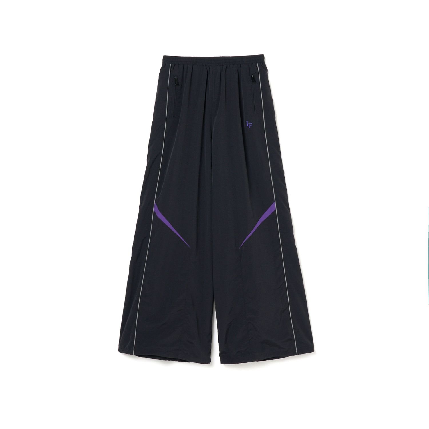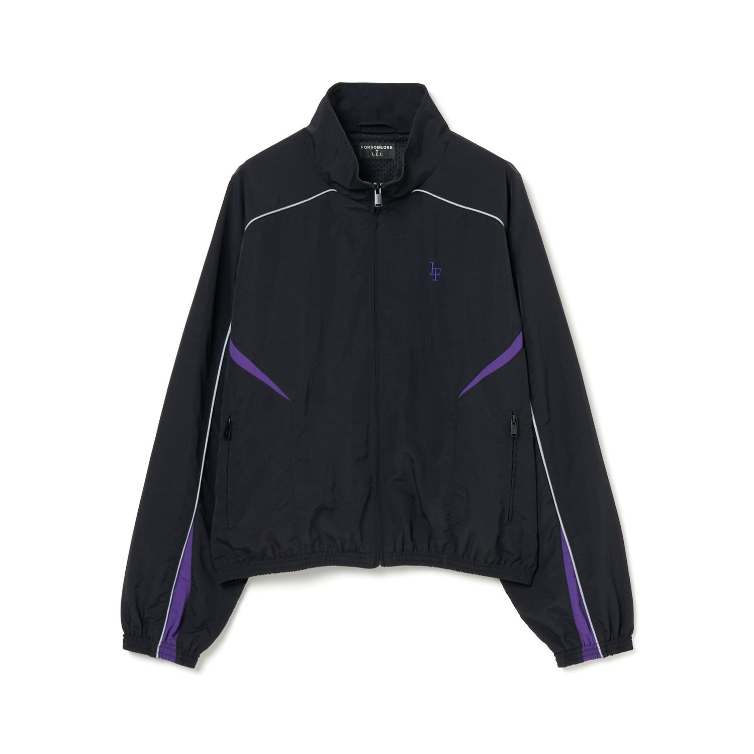 特にお気に入りは「LF NYLON TRACK JKT」と「LF NYLON TRACK PT」のセットアップとのことで、「シルエットもこだわらせてもらいました。かなりワイドなパンツになっていて、こういうセットアップジャージではあまり見ないアイテムで。(ジャケットは)僕あんまり長いのが似合わなくて、結構丈を短めに作りました。色もパープル入れさせていただいて。シルエットはかなり攻めているのにすごくシンプルで、しかもめっちゃ軽くて着やすいのでファンの方にも着て欲しいですね。」とおすすめ。