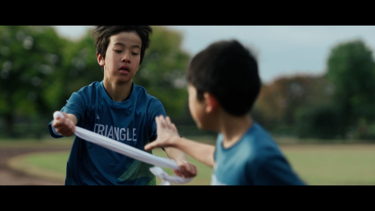 たすき目線のアングルとはどういったものだろうと、カメラマン・スタッフ一同で試行錯誤しながら特殊なカメラを使用して撮影しました。箱根駅伝を目指す若者の葛藤を表現するために、リアルな中学生の陸上競技選手たちに出演してもらったのですが、芝居は初めてなのに、みなさんいまの自分の立場に置き換えて感情を表現して頂いてとてもいいシーンになりました。