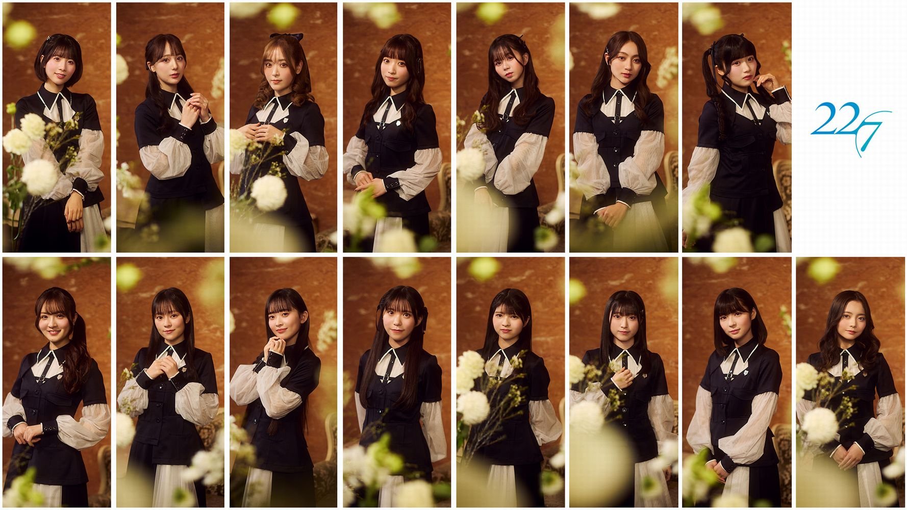 重厚感のある大階段とシャンデリアを背景に、オーディションを勝ち抜き 22/7_the 3rd として活動してきた3期生8名を迎え、グループ史上最多となる 15名 が一堂に会し、22/7の新たなフェーズ――“第三章”の幕開けを象徴する一枚となっています。