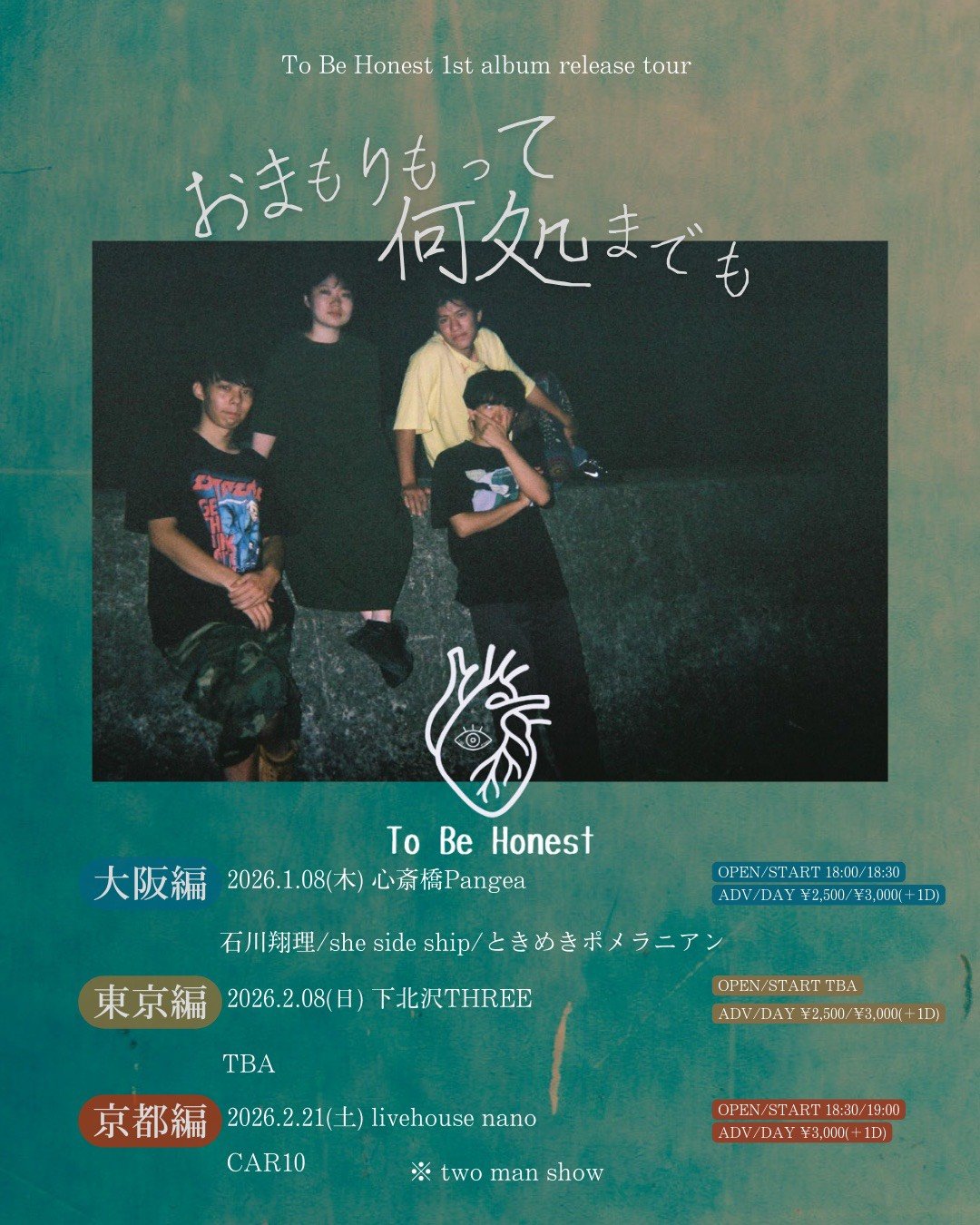 To Be Honest×Pangea pre. 1st album release tour「おまもりもって何処までも」