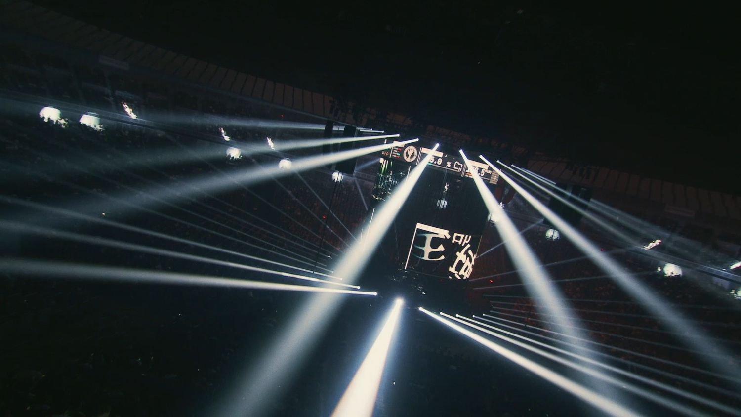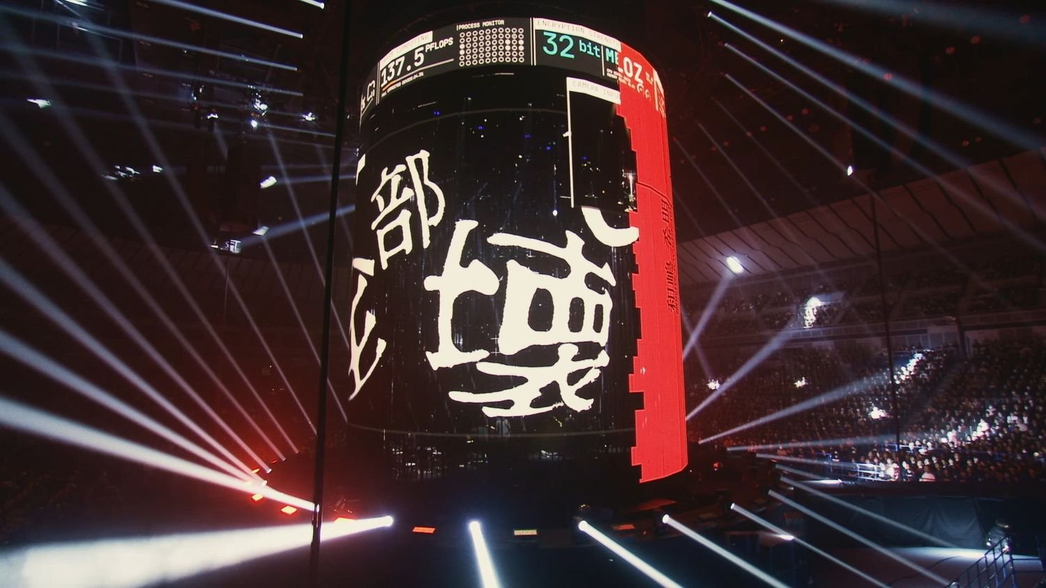 今回の映像では、会場中央に配置された巨大な円柱型のLEDに映し出されるタイポグラフィと光の演出が、秋田ひろむの詞世界と呼応しながら、作品全体の思想を象徴する場面が切り取られている。
