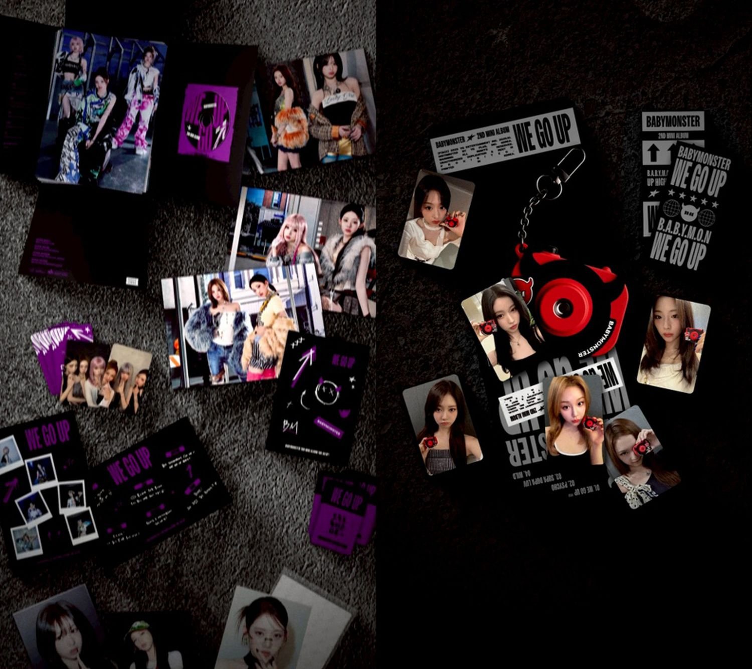 緊張感溢れるサウンドが流れる中で、フォトブックWE·GO·UP3種からメンバー別の肖像が盛り込まれたパターン6種、ポストカード、ミニビームキーリングまで計11種のアルバムが順に繰り広げられ、視線を虜にした。 BABYMONSTERの新しい音楽世界が込められた各バージョンの構成品を直観的に確認することができ、独創的なデザインと細心なコレクション構成がグローバルファンの所蔵欲求を刺激する見通しだ。