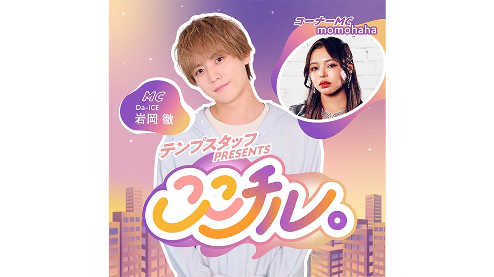 5人組男性アーティスト・Da-iCEのパフォーマー岩岡徹がMC、4人組グループYouTuber・午前0時のプリンセスのメンバーであるmomohahaがコーナーMCを務めることになった、Podcast番組『テンプスタッフpresents ここチル。』が本日4月8日(水)から毎週水曜日17時より放送開始される。また放送開始に伴い、新たにキービジュアルも公開となった。