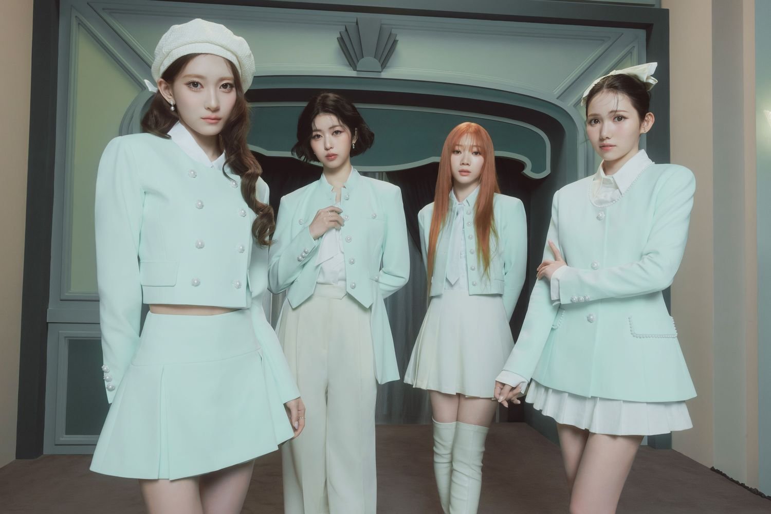 本日公開された新ビジュアルでは、これまでのクールなイメージを一新。柔らかなミントカラーを基調としたジャケットを身に纏い、凛とした気品が漂うクラシカルなIS:SUEの姿が描き出されている。過去作の鋭い雰囲気から打って変わり、優雅で洗練された佇まいは、彼女たちが新たな表現のフェーズへと突入したことを予感させる。
