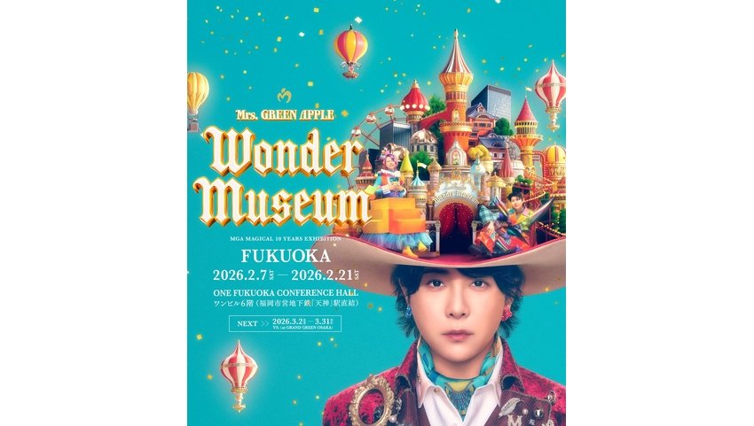 Mrs. GREEN APPLE MGA MAGICAL 10 YEARS EXHIBITION 『Wonder Museum』 いよいよ2月7日(土)より福岡会場で開催!