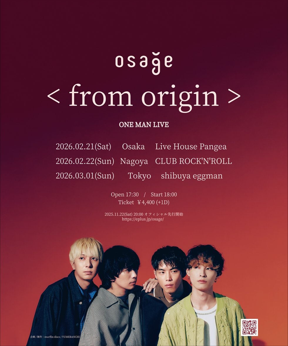 さらにosageは先日東名阪ワンマンツアー「from origin」の開催を発表したばかり。