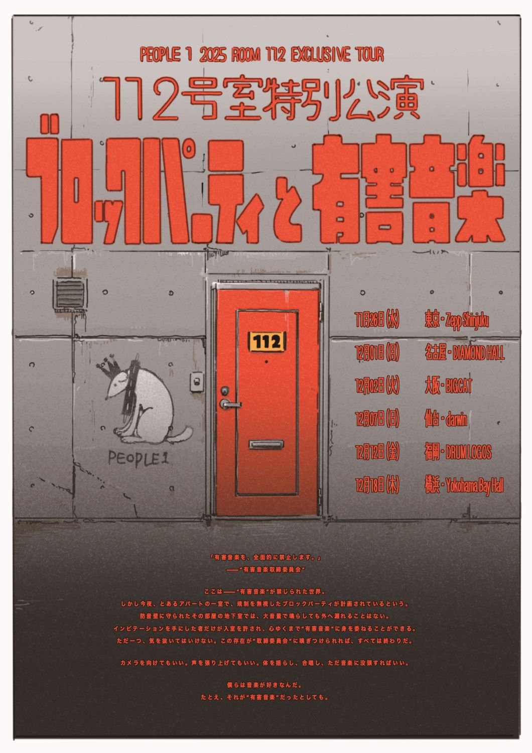 ▼PEOPLE 1 2025 ROOM 112 EXCLUSIVE TOUR 112号室特別公演 “ブロックパーティと有害音楽”
