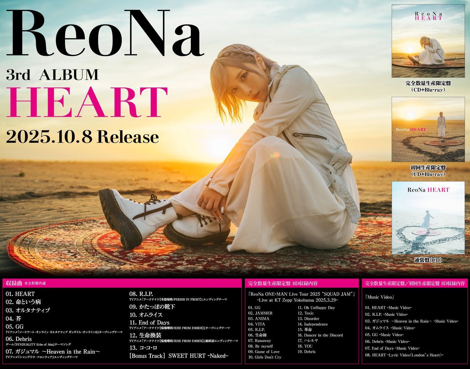 そのReoNaが今年2025年10月8日(水)に発売する3rdアルバム「HEART(ハート)」の収録内容・クレジットが公開された。