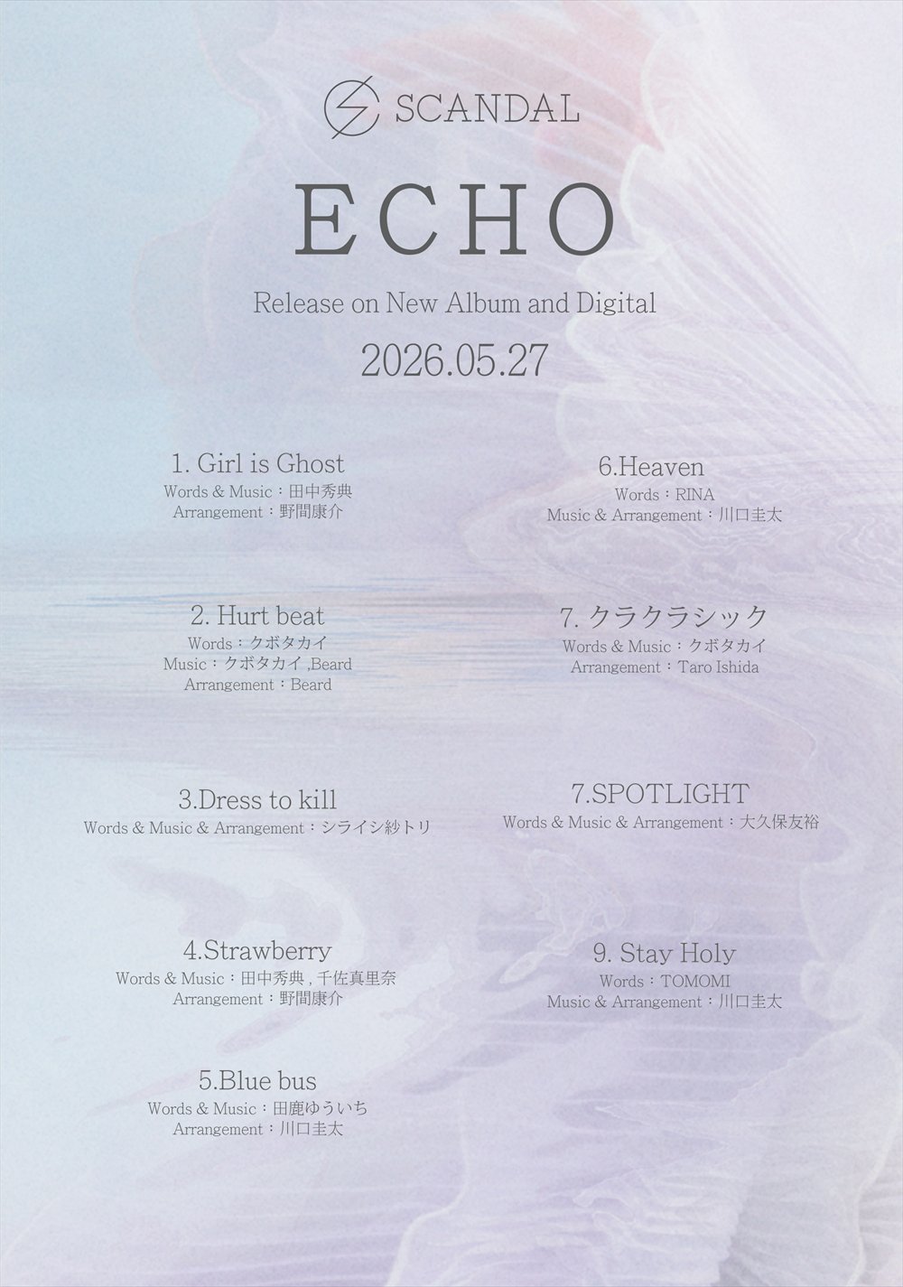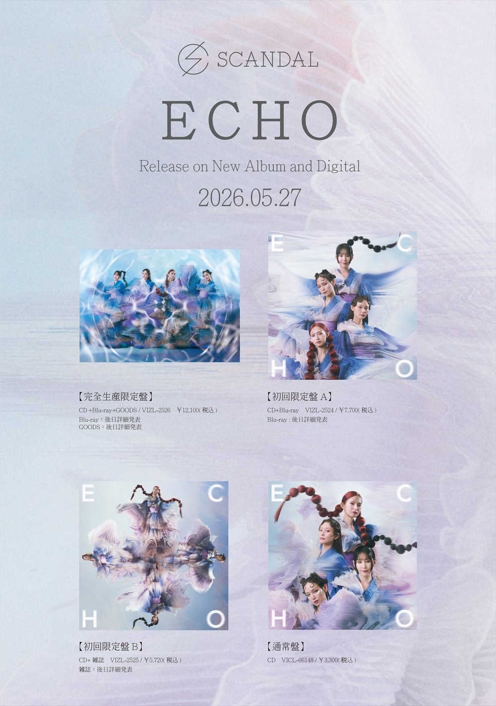 そんなSCANDALが、5月27日(水)にリリースする、New Album『ECHO』の収録曲とジャケット写真が公開された。