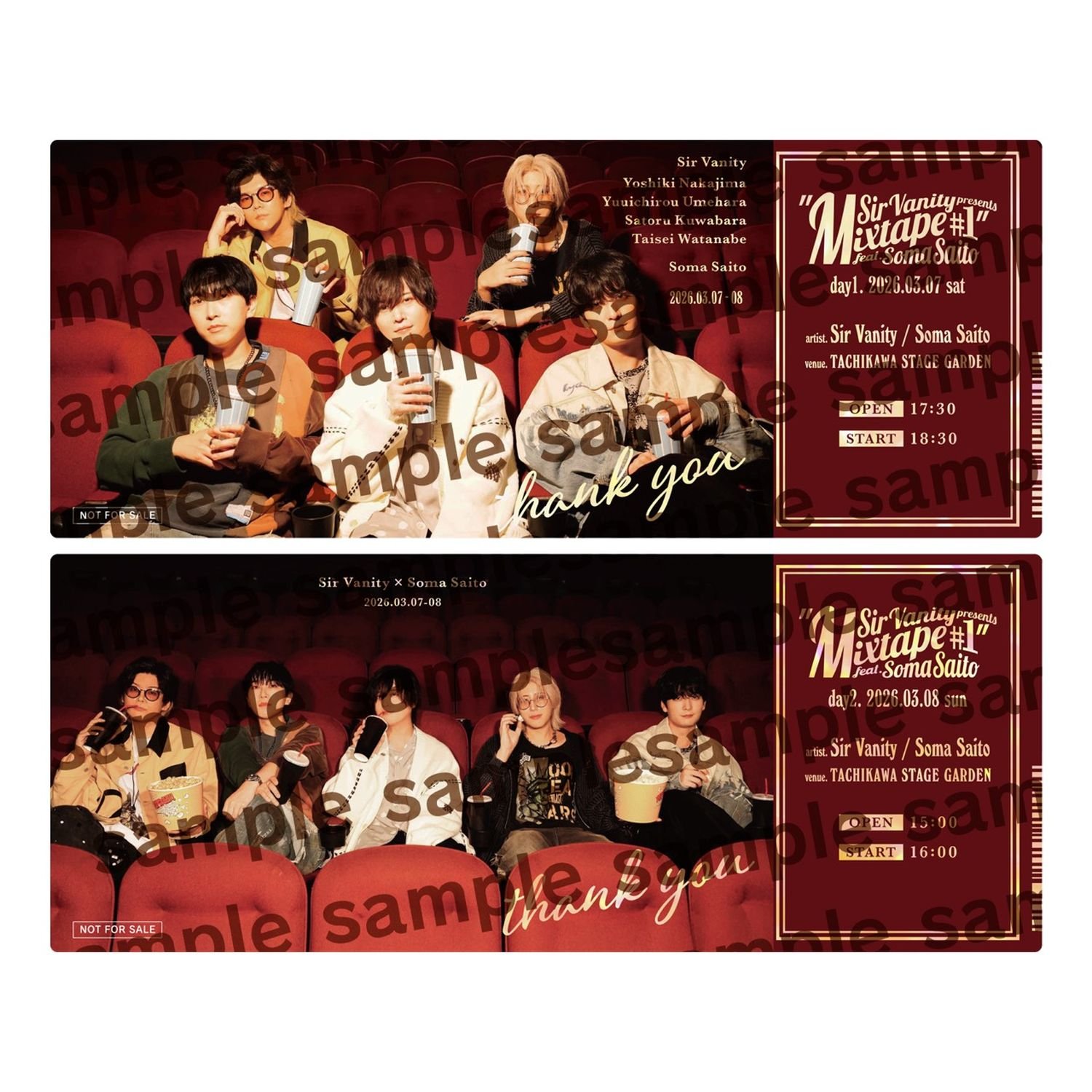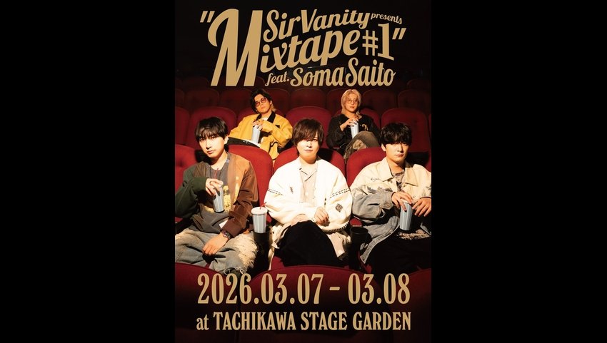 "Mixtape#1"は2026年3月7日(土)・3月8日(日)の2DAYS、TACHIKAWA STAGE GARDENで各日1公演ずつ開催予定。Sir Vanityは声優の梅原裕一郎と中島ヨシキ、音楽プロデューサーの桑原聖、クリエイティブディレクターの渡辺大聖の4人からなるバンドプロジェクト。斉藤壮馬は声優としての活動に加えて、2017年、SACRA MUSICよりソロアーティストとしてデビューしており、これまで両者個々人の交流はあったものの、アーティストとして交わるのは今回の対バンが初となる。彼らのライブがどのようなものになるのか、ぜひ現地で目撃したい。