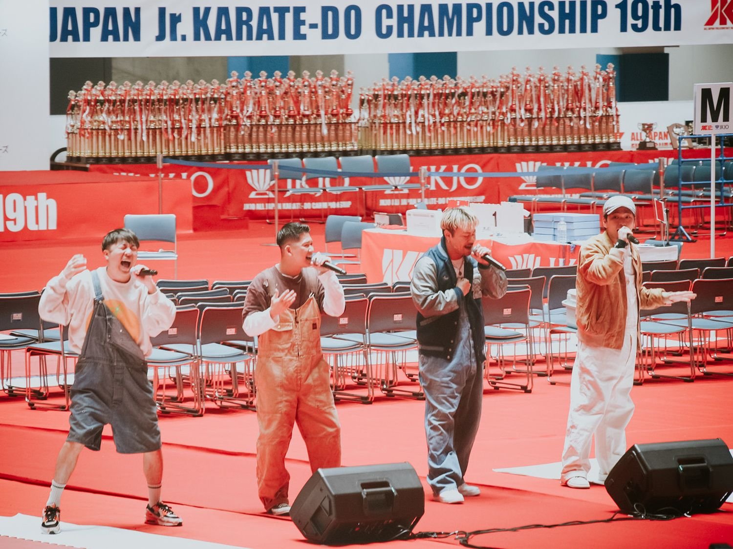 2028年までに大阪城ホールでの単独公演を目指すボーカルグループ・THE FRANK VOX(フランクボックス)が11/23に開催された「第19回JKJO全日本ジュニア空手道選手権大会」及び「第4回全日本学生フルコンタクト空手道選手権大会」のテーマソングとなっている「闘う君への応援歌」を約7,800人の前で歌唱。